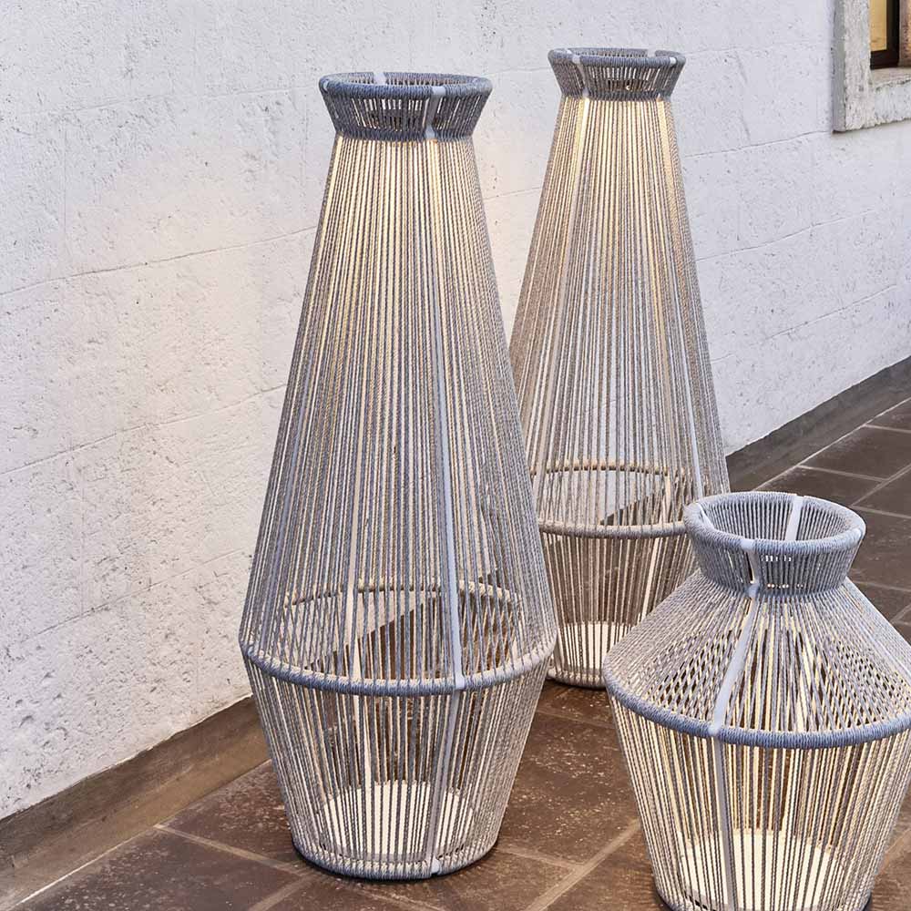 Lámpara de exterior en aluminio con tejido de fibra, LED y balastro incluido Made in Italy.