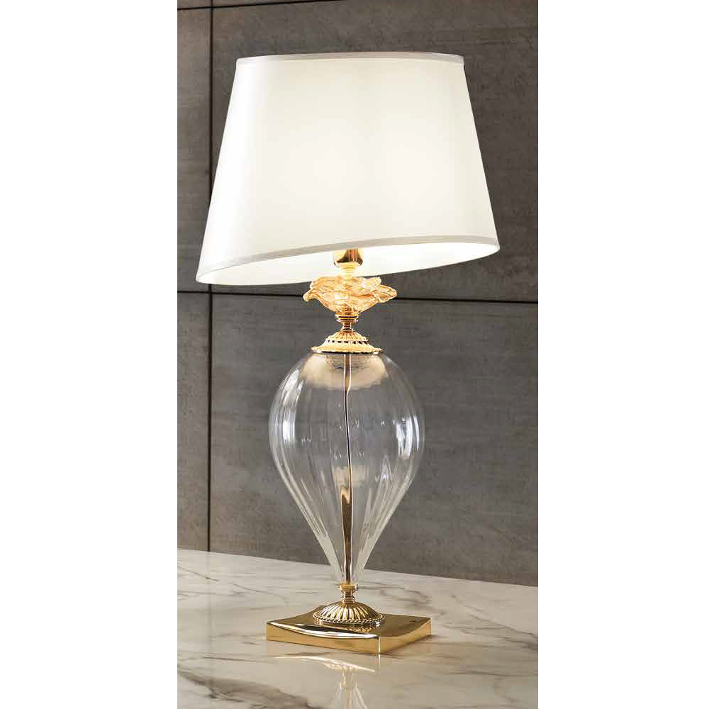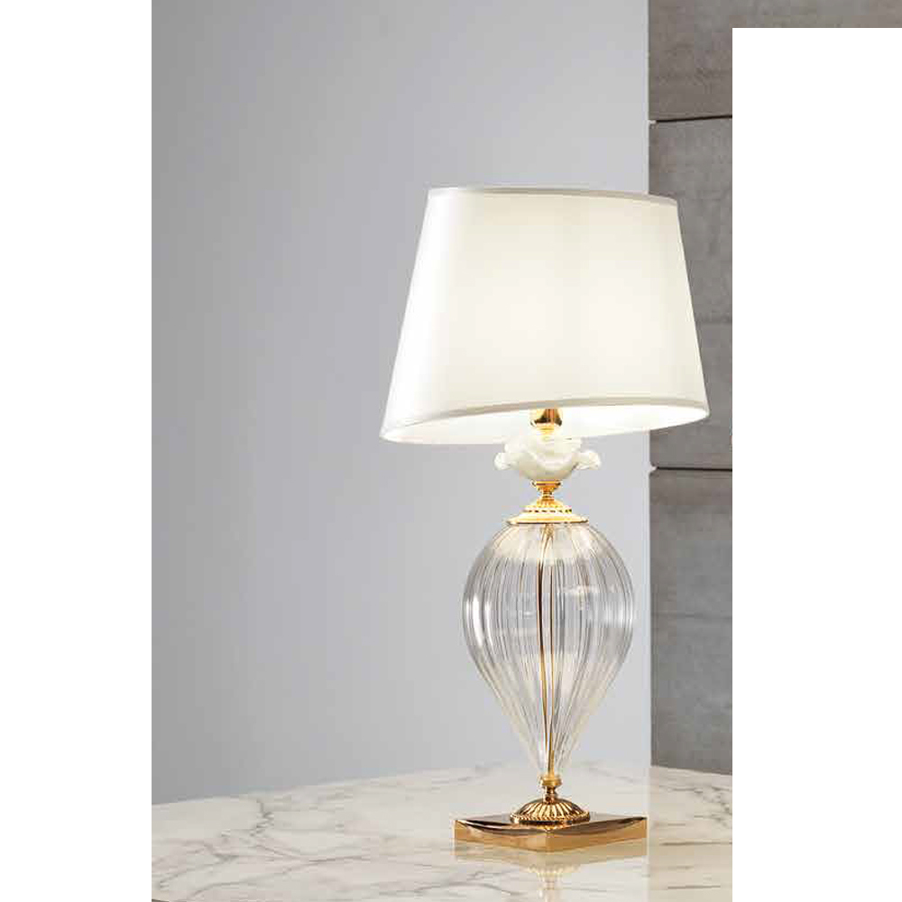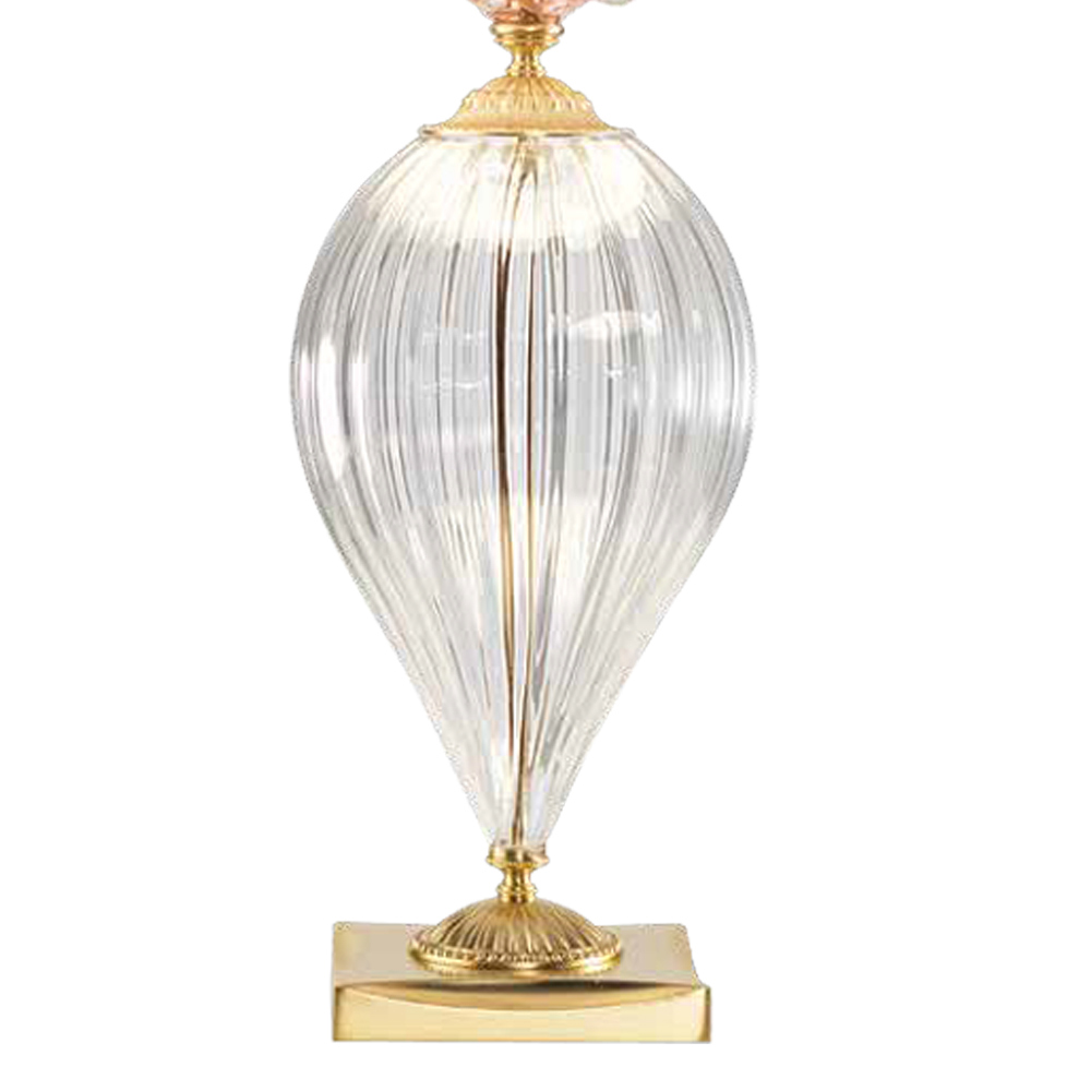 Lámpara de sobremesa en cristal artesanal con decoración en cristal, lujo made in Italy.