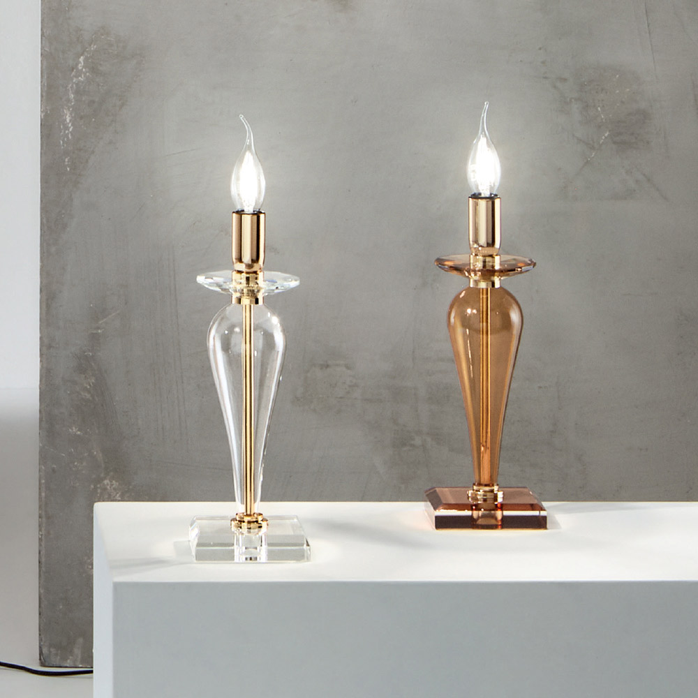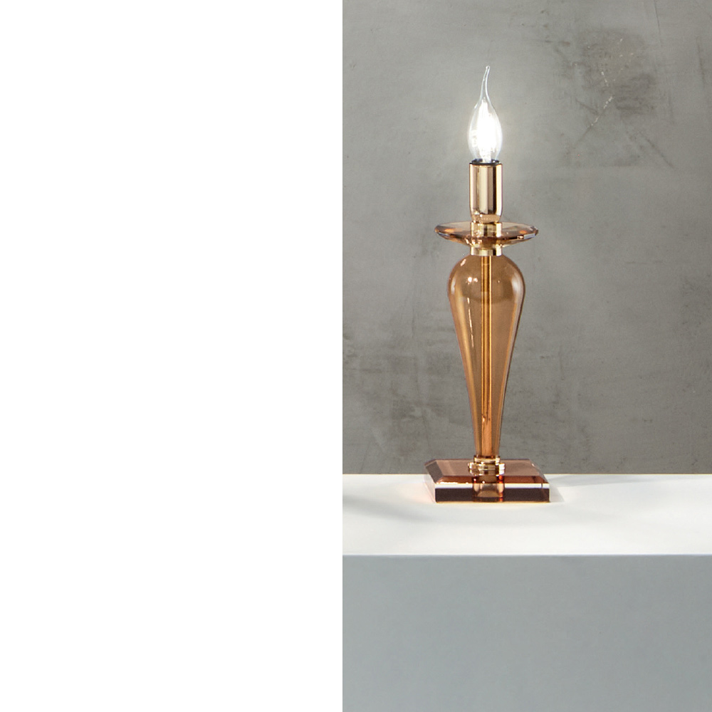 El núcleo de metal dorado concluye en un diseño que aporta elegancia y refinamiento. Perfecta tanto para mesitas de noche de dormitorio como para el escritorio de un despacho o salón con un estilo clásico y elegante.