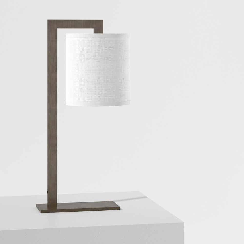 Lámpara de mesa de diseño moderno en metal con pantalla de lino Made in Italy.