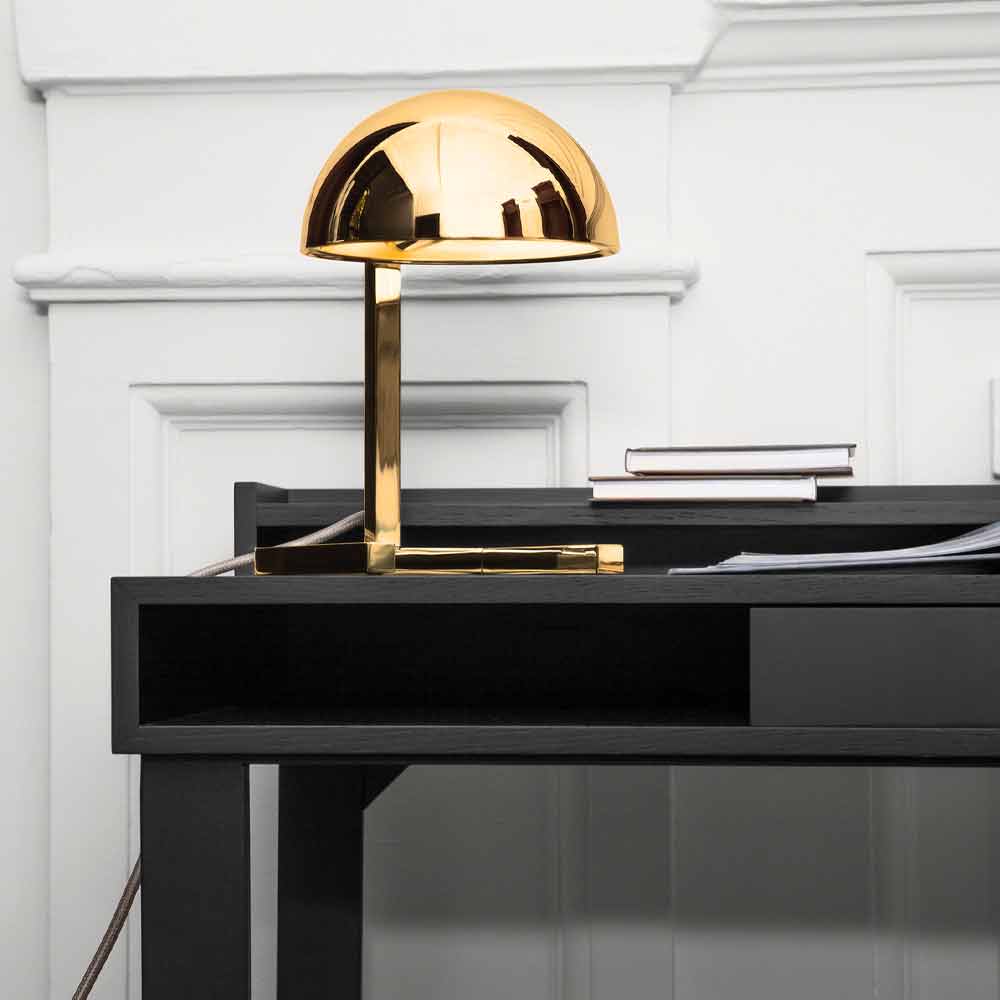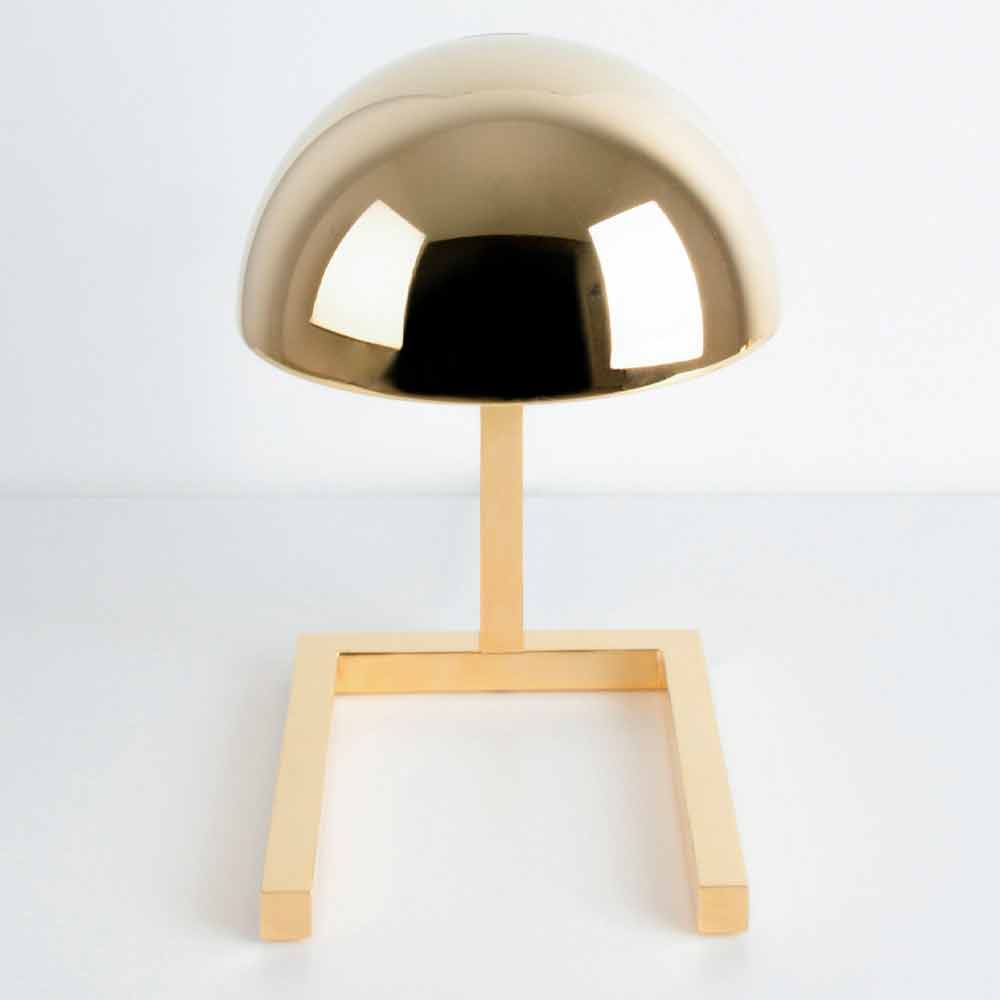 Lámpara de sobremesa íntegramente fabricada en Italia en latón pulido con cable transparente de 140 cm equipada con botón ON-OFF . Su diseño cuenta con el uso de diferentes formas geométricas que crean un maravilloso resultado armonioso con una estética casi futurista. Su estructura está formada por un casquete esférico que se coloca sobre un pedestal con una figura cuadrangular dando vida a una idea de iluminación original y creativa, ideal tanto para ambientes domésticos como para estudios u oficinas donde contribuirá a enriquecer el mobiliario gracias a una extraordinaria toque elegante y refinado .