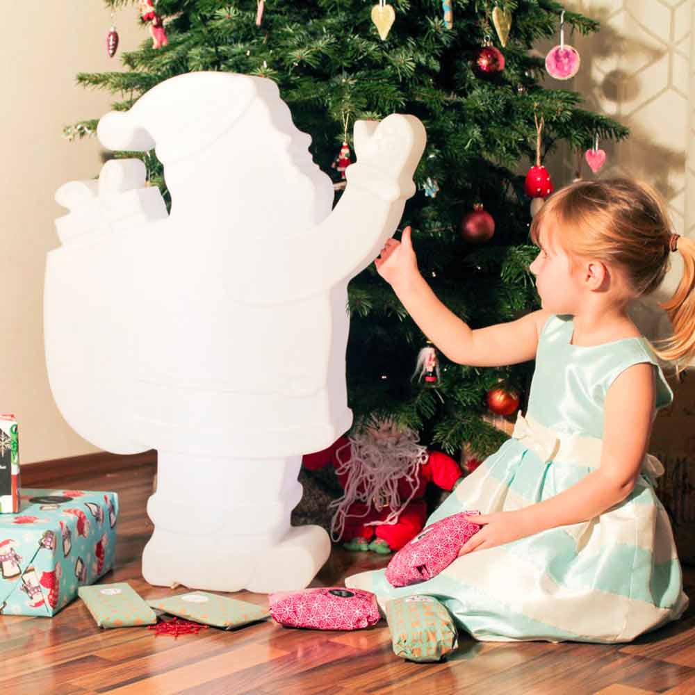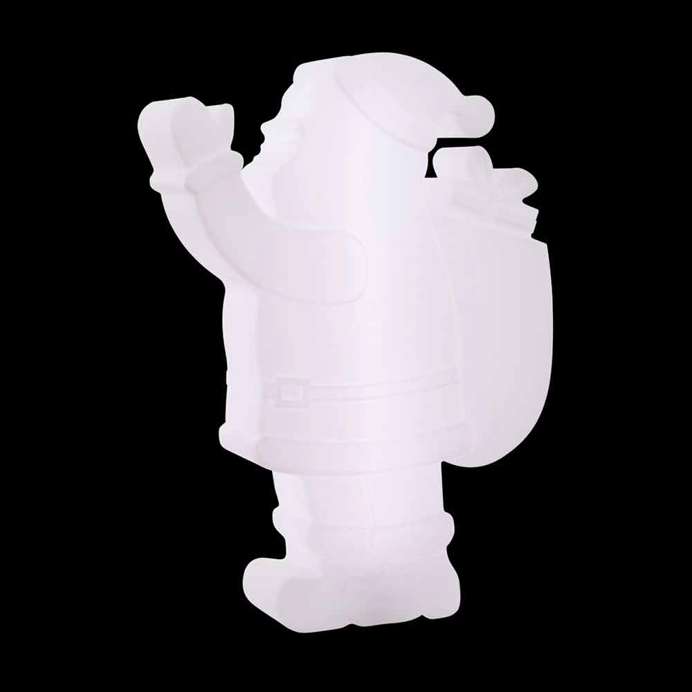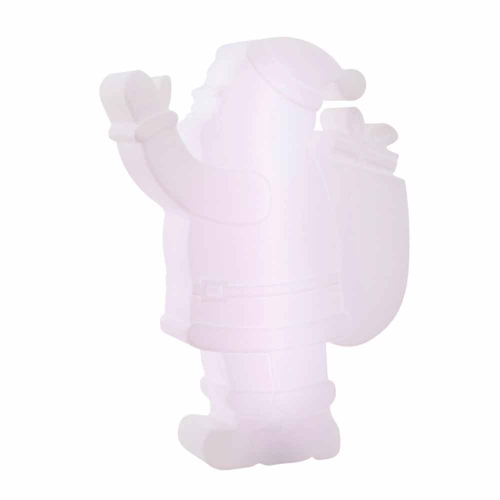 Lámpara de pie en forma de Papá Noel en polietileno blanco con leds multicolores para uso interior o exterior.
