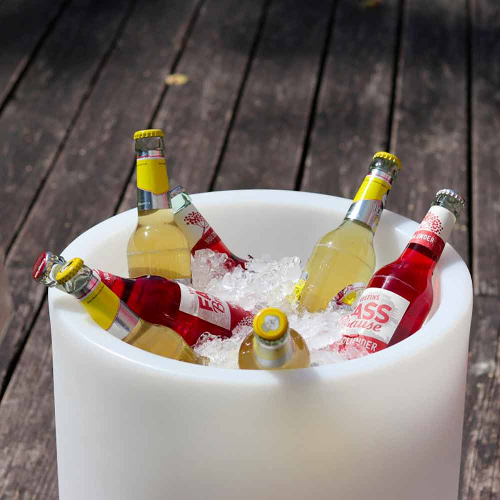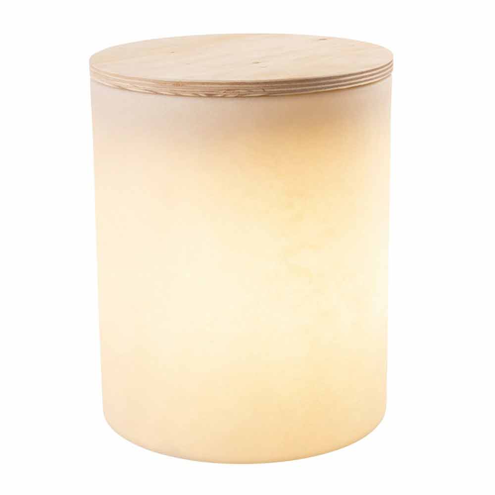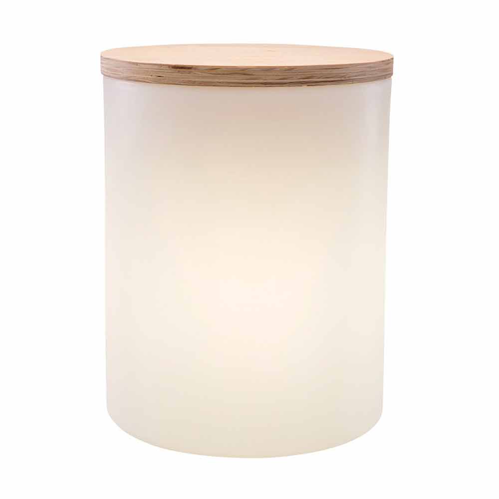 forma cilíndrica con la tapa de madera la hace adecuada para su uso como asiento, mientras que el sistema de drenaje inteligente también la hace adecuada como maceta luminosa para plantas.