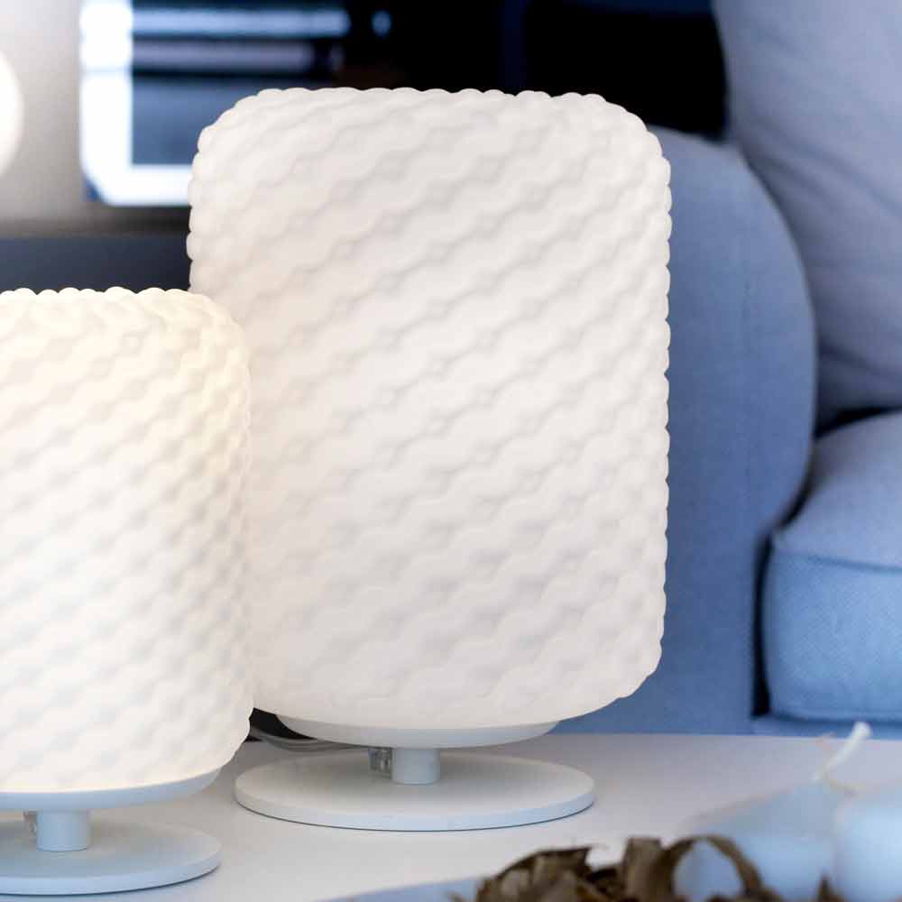 lámpara de mesa Selene Domino Ø21 H30cm, vidrio soplado fabricado en Italia