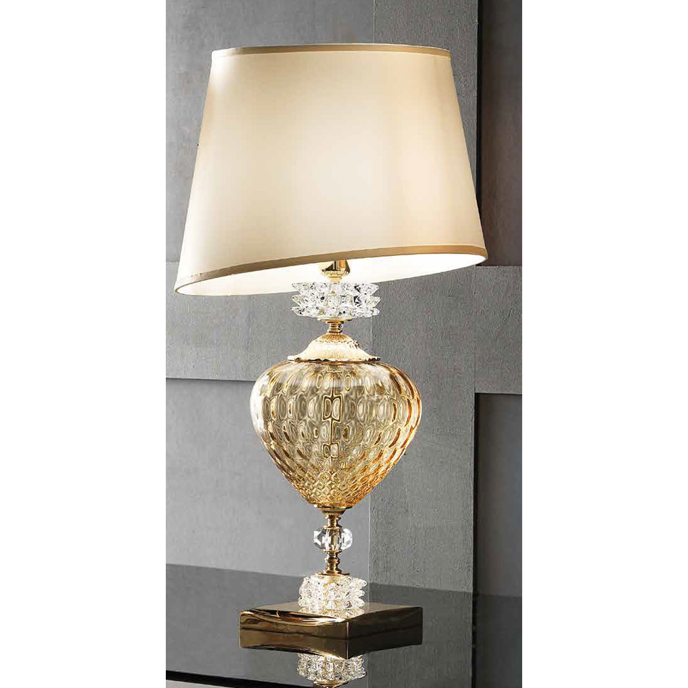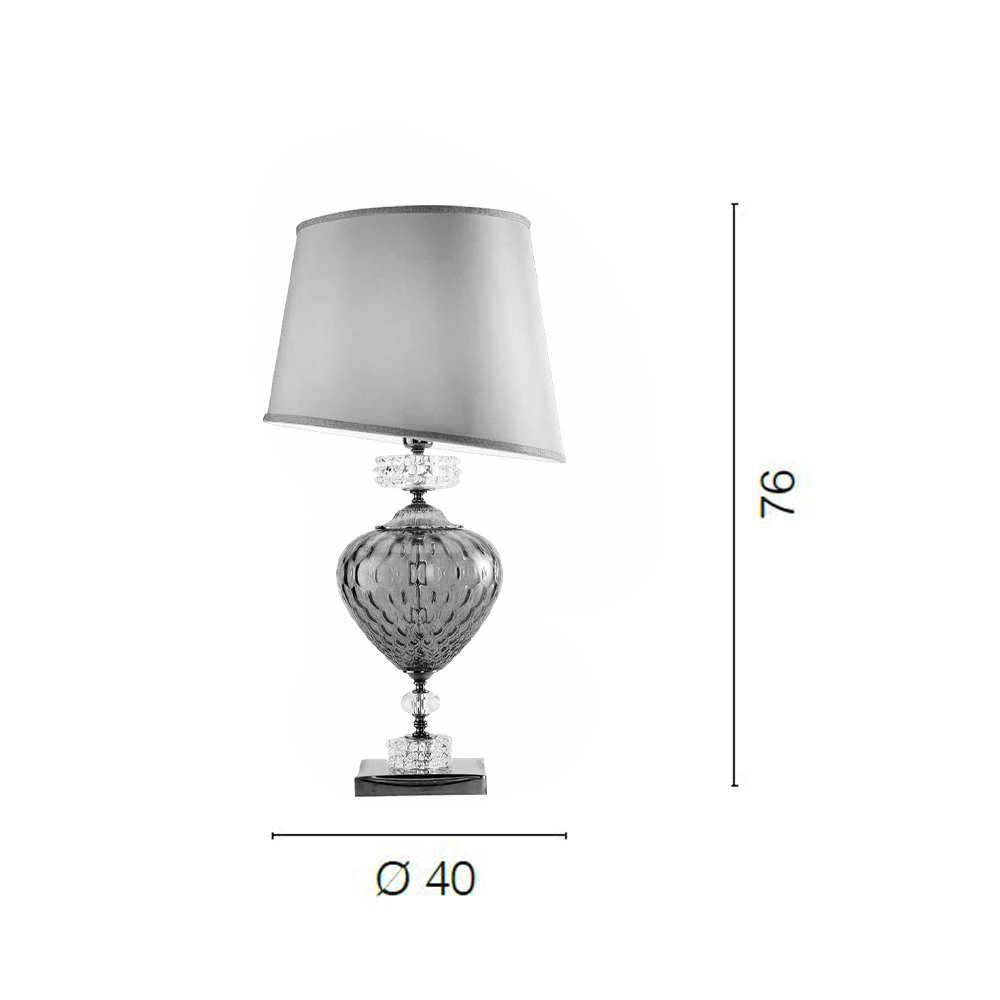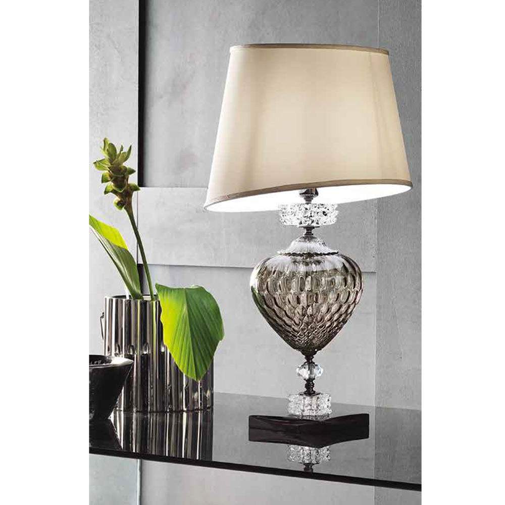 Lámpara de mesa en vidrio y metal artesanal con pantalla, lujo italiano.
