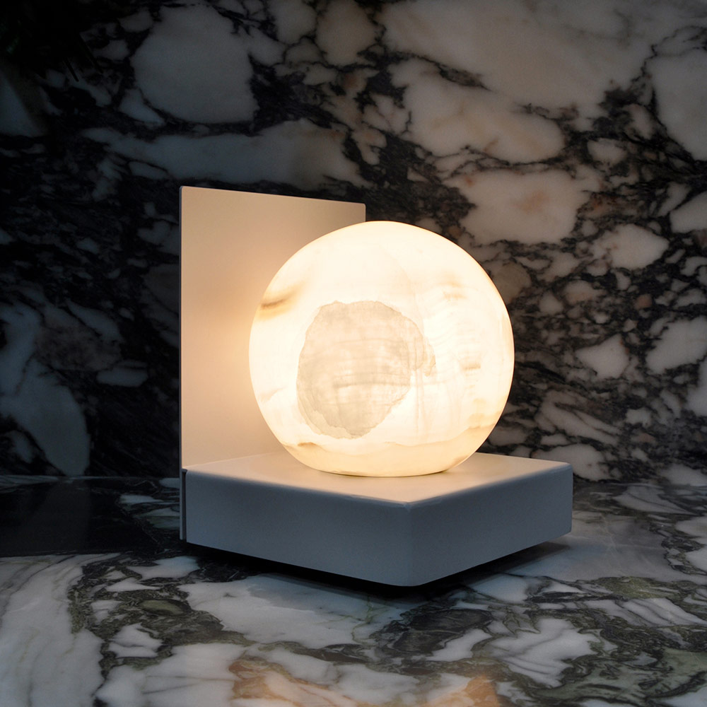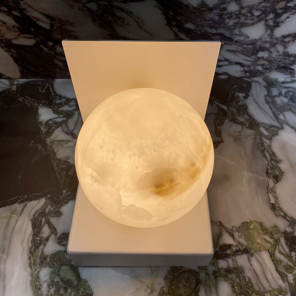 Esta lámpara de esfera de mármol es una declaración de estilo y calidez, perfecta para quienes quieren añadir un ambiente íntimo y acogedor a cualquier ambiente. La forma esférica de mármol translúcido emana una luz suave y difusa , proyectando los delicados patrones de sus vetas naturales en las paredes.