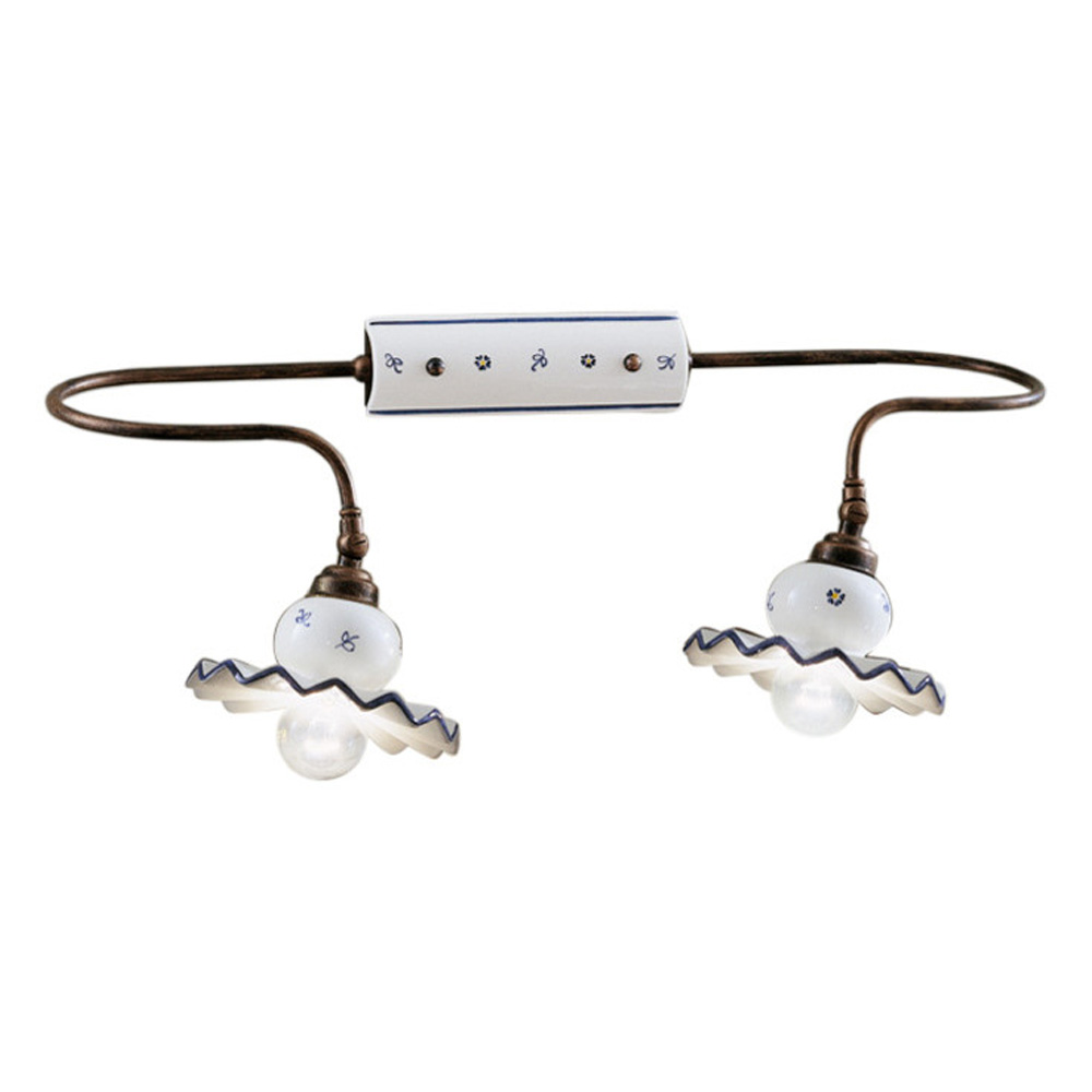 Aplique de pared artesanal de metal y cerámica pintado a mano fabricado en Italia por Ferroluce.