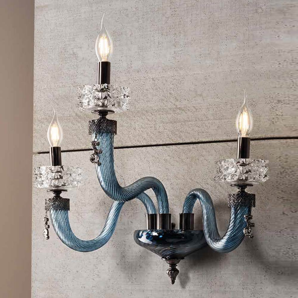 Aplique de pared de 3 luces en vidrio y metal hechos a mano, diseño de lujo italiano.
