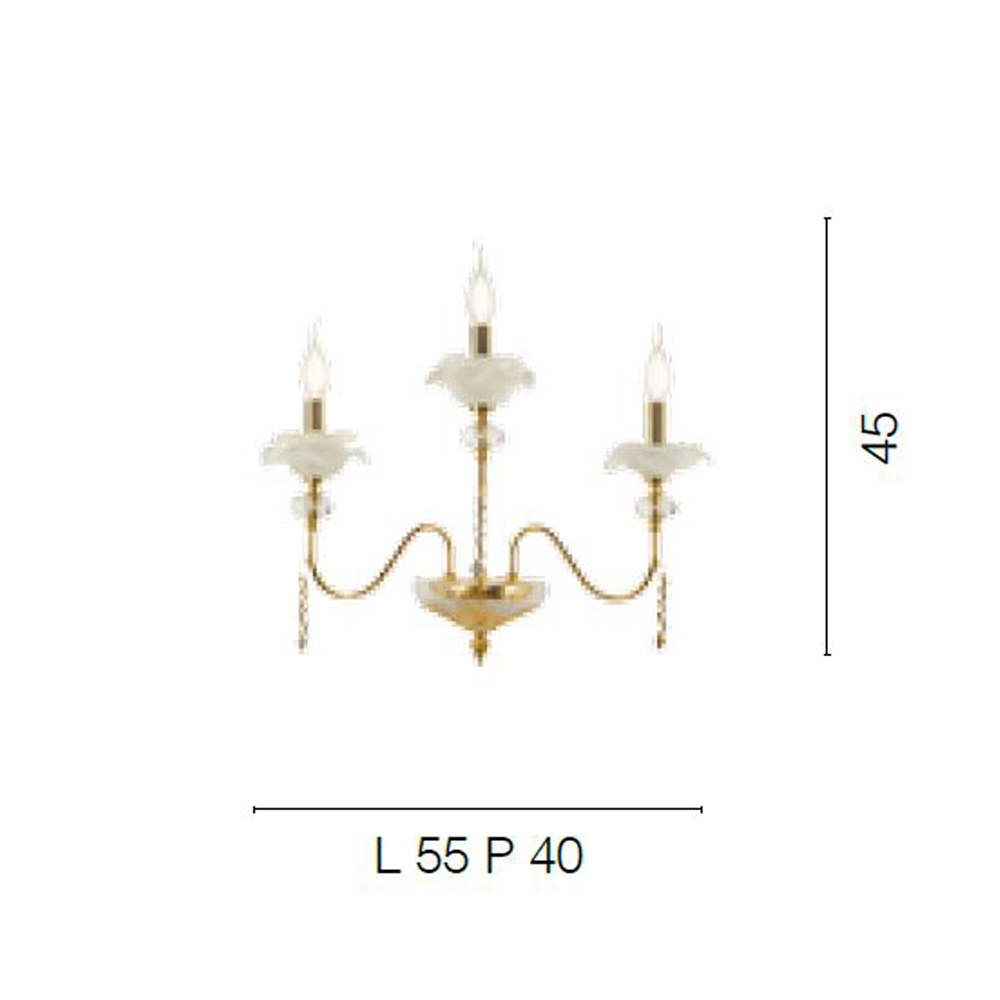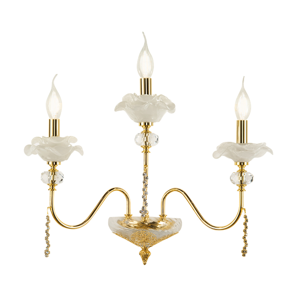 Aplique de 3 luces en cristal artesanal con capullos y gotas de cristal, lujo made in Italy.