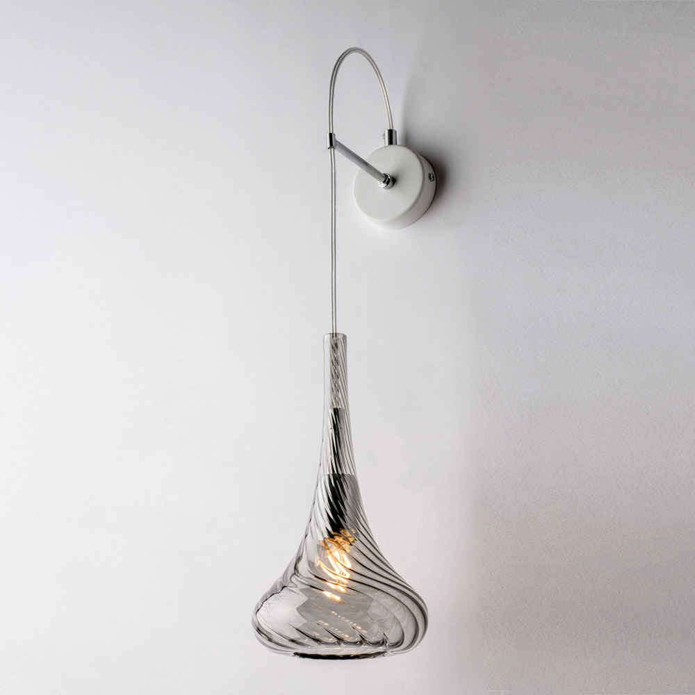 Disponible en acabados transparente , ámbar o gris , este aplique te permite personalizar la atmósfera de tu espacio: luminoso y espacioso en la versión transparente, cálido y envolvente en ámbar, elegante y moderno en gris. Es ideal para pasillos , entradas , dormitorios , salas de estar y espacios de diseño .