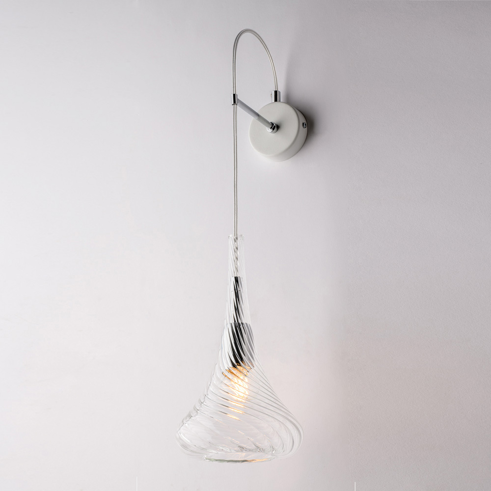 Elegante y ligera, esta lámpara de pared de hierro artesanal con cristal Pyrex es una solución de iluminación contemporánea, diseñada para realzar sus paredes con un estilo sutil. El difusor colgante de cristal Pyrex, sinuoso y delicadamente elaborado, crea un efecto visual refinado y difunde una luz suave y acogedora.