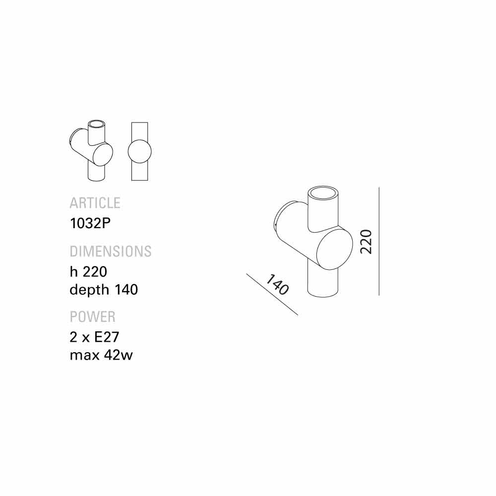 El modelo consta de un cilindro central que contiene la conexión eléctrica, del que se ramifican otros cilindros laterales en varias posiciones. Está realizada en cerámica blanca fundida, pintada con esmalte y bicocción a más de 1000 grados. Los componentes metálicos son de varios colores, entre ellos el blanco y el naranja, inspirado en los primeros productos industriales de los años 60, o el verde fluorescente como la ropa insignia de quienes trabajan en la calle.