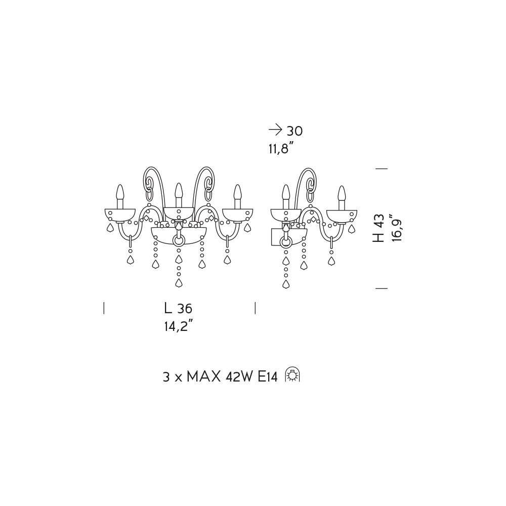 Bombillas (no incluidas) : 3 x MAX 42W E14