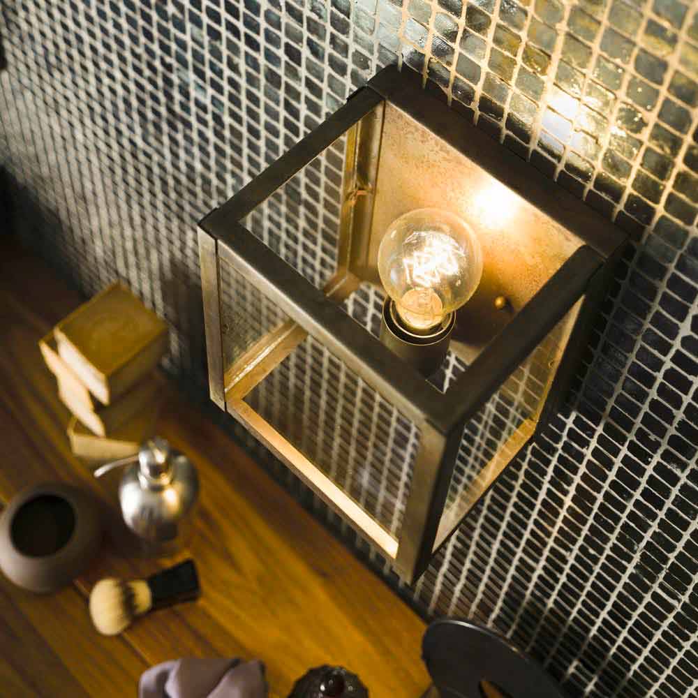 Lámpara de pared industrial latón y cristal Quadro Il Fanale