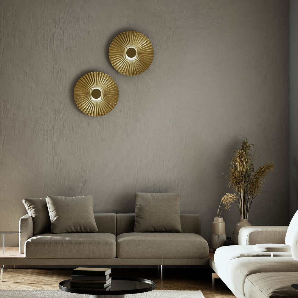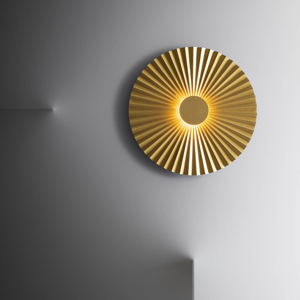 Lámpara de pared en latón natural pulido plisado, 2 medidas made in Italy.