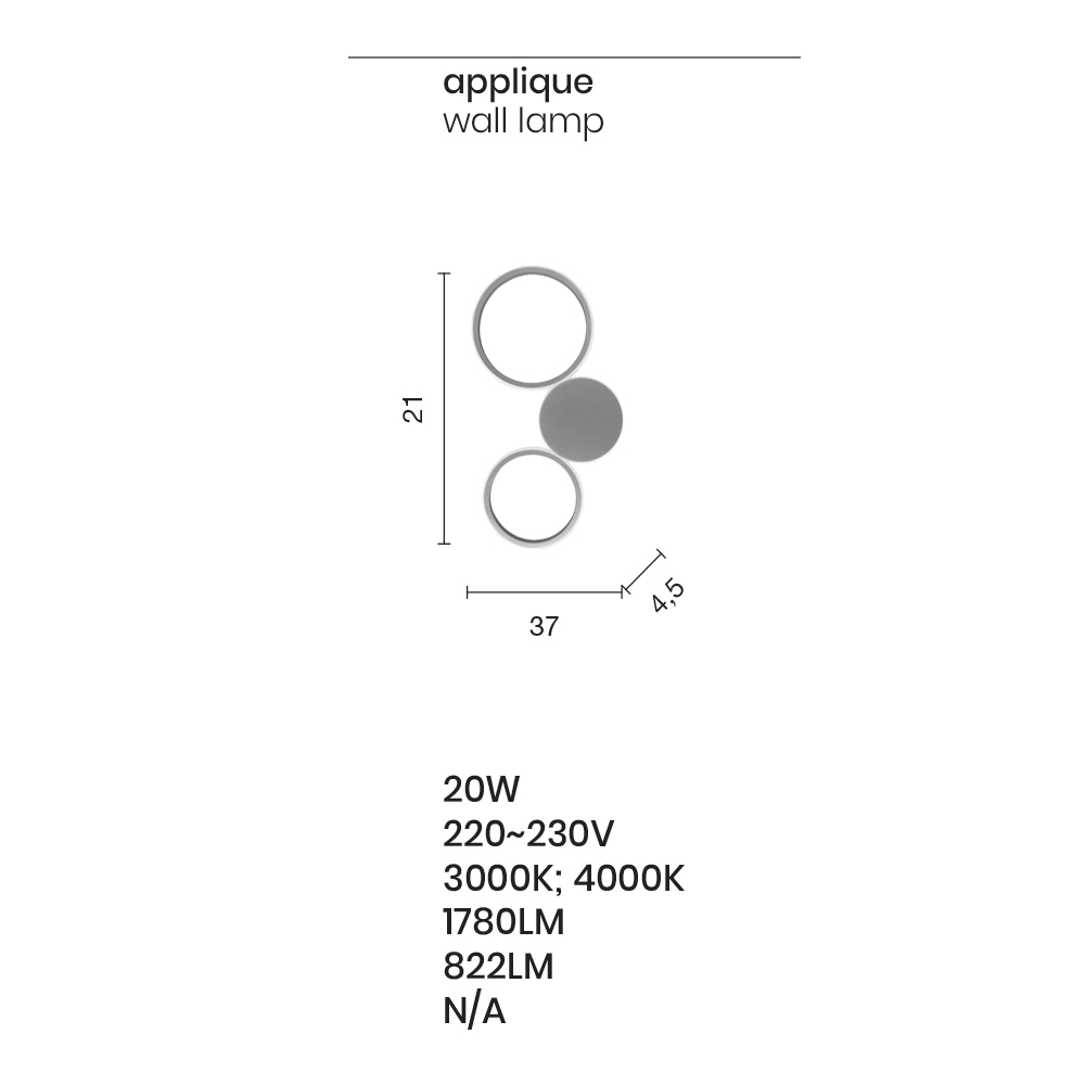 fuente LED regulable. Elegancia y originalidad se unen en una composición moderna formada por tres círculos de diferentes tamaños unidos entre sí y cubiertos en el exterior por un difusor blanco lechoso que encierra la tira de LED, creando maravillosos efectos de luz en las paredes para un resultado de