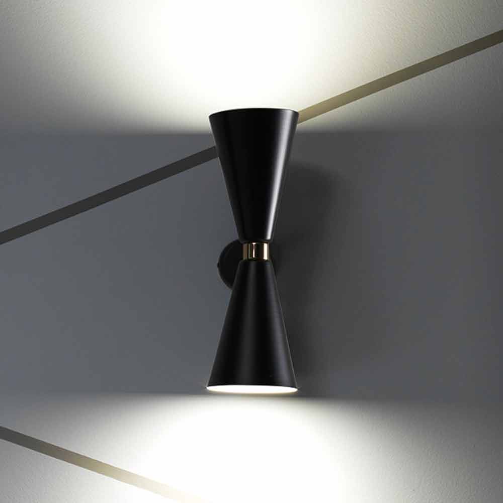 Lámpara de pared en metal negro mate con detalles en acabado dorado Made in Italy.