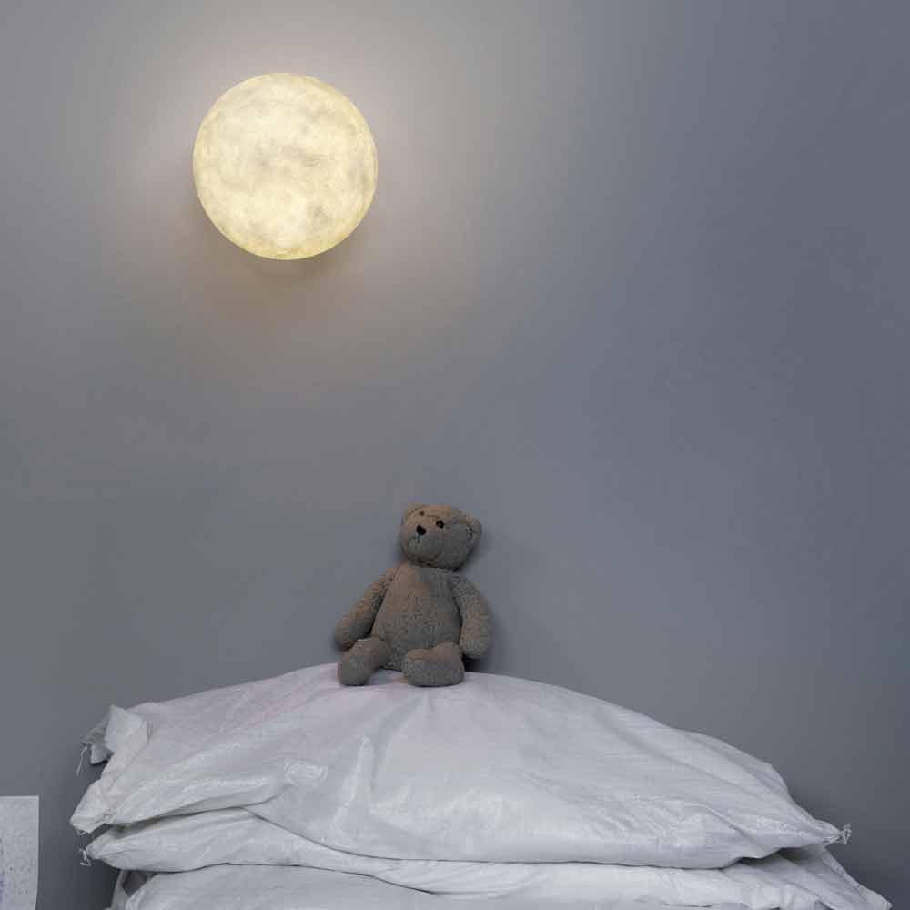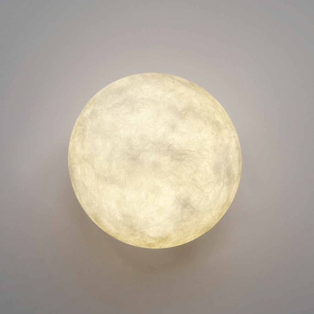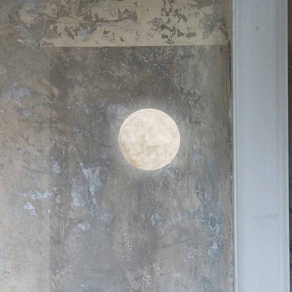 El diseño y la forma de la lámpara de pared A. Monn recuerdan la luna real.