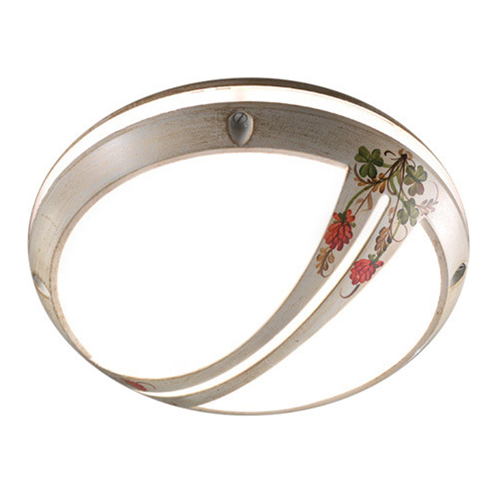 Plafón de exterior redondo de aluminio pintado a mano con flores, fabricado en Italia por Ferroluce.