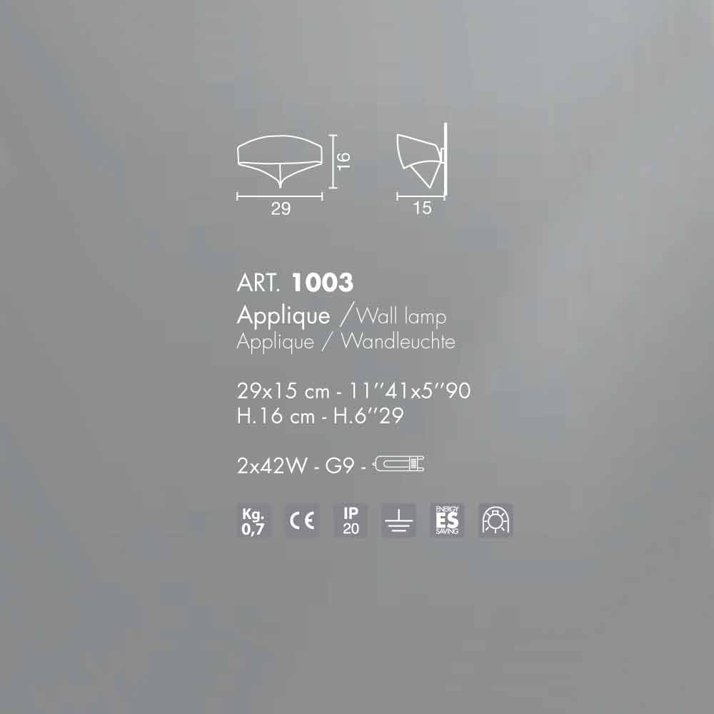 Shield es una lámpara de pared diseñada partiendo de una banda de acero en forma en láser sucessivamente doblado a mano con el fin de crear un elemento no dividida y envolvente. Disponible en varios acabados y preparado para la 'utilización con bombillas G9 2 x 42 W o 1x11W LED.