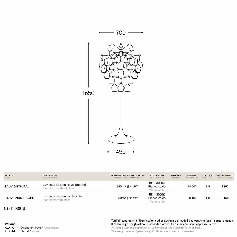 Lámpara de pie hecha con 30 vasos modelo Sauvignon