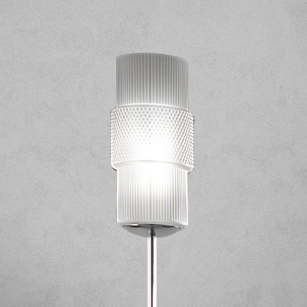 Lámpara de pie artesanal en cristal Venecia soplado a mano y metal cromado.