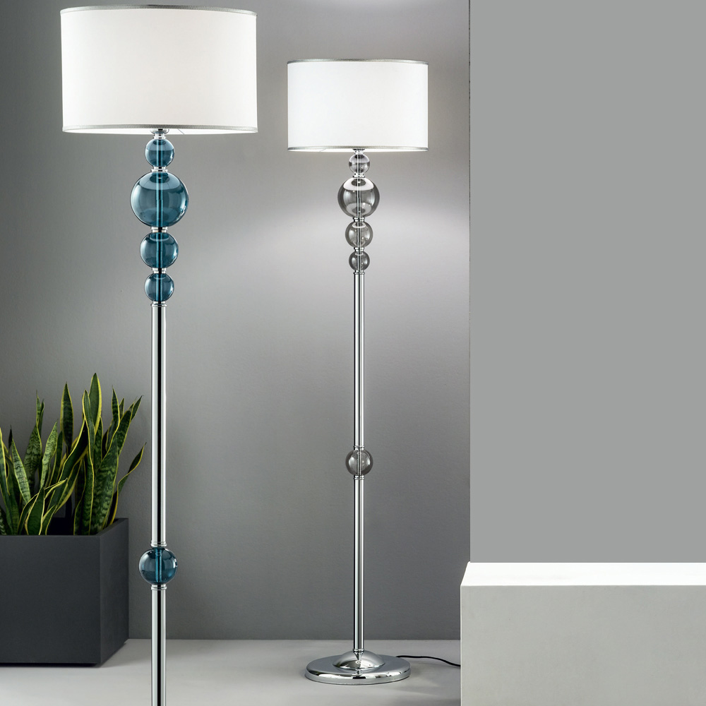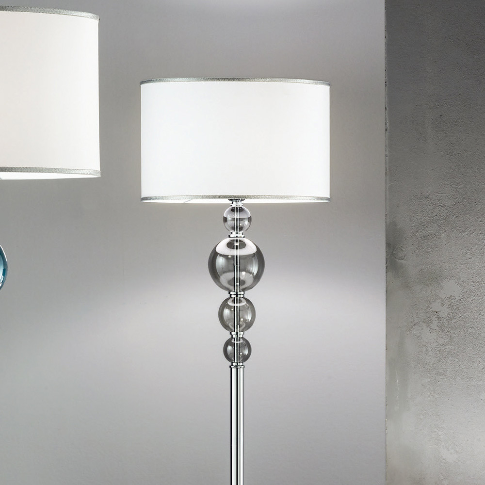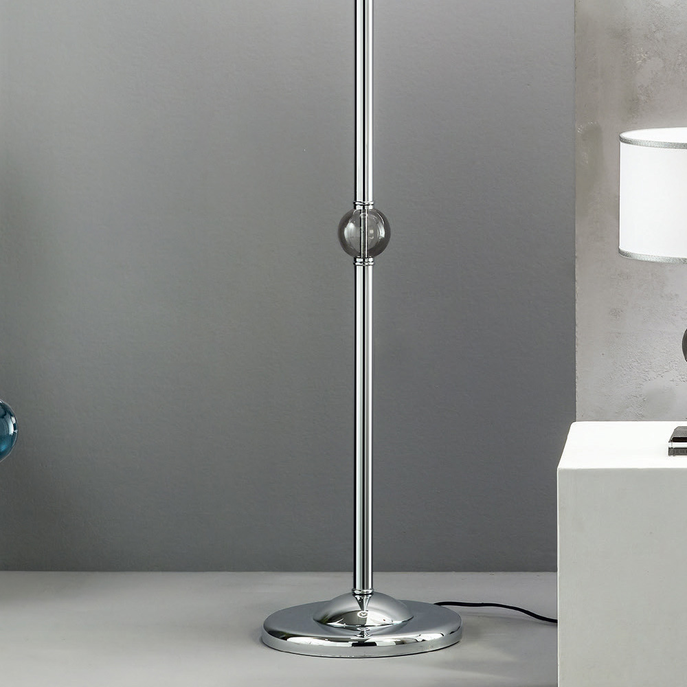 Lámpara de pie clásica y elegante en metal cromado y vidrio hecho a mano, hecho en Italia.
