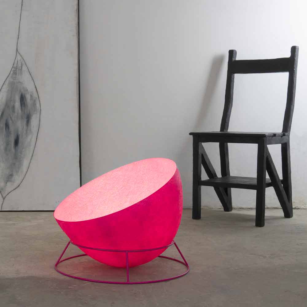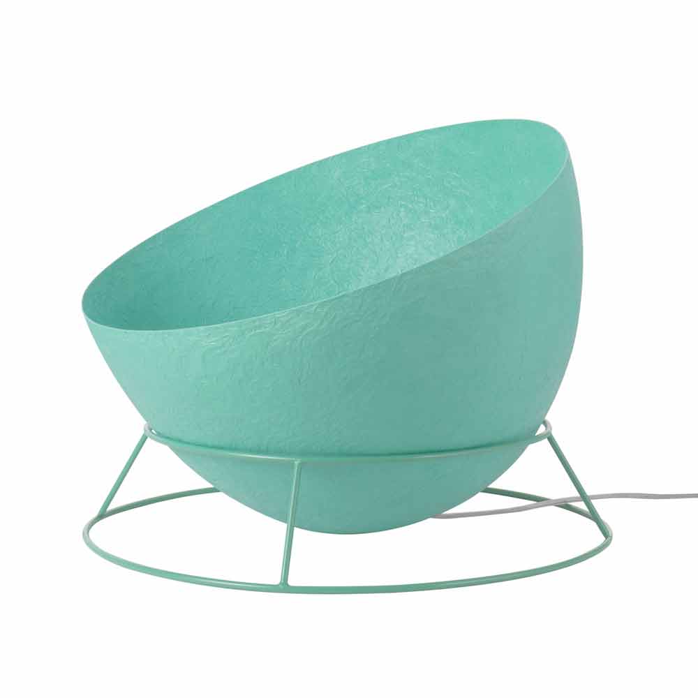 La moderna lámpara H2o F Nebulite de la colección Luna de In-es.artdesign está compuesta por una estructura de acero coloreada y un difusor de luz circular también coloreado en Nebulite®, un material innovador compuesto por resina y fibra, cuyas vetas dan a la lámpara un particular efecto "lunar".