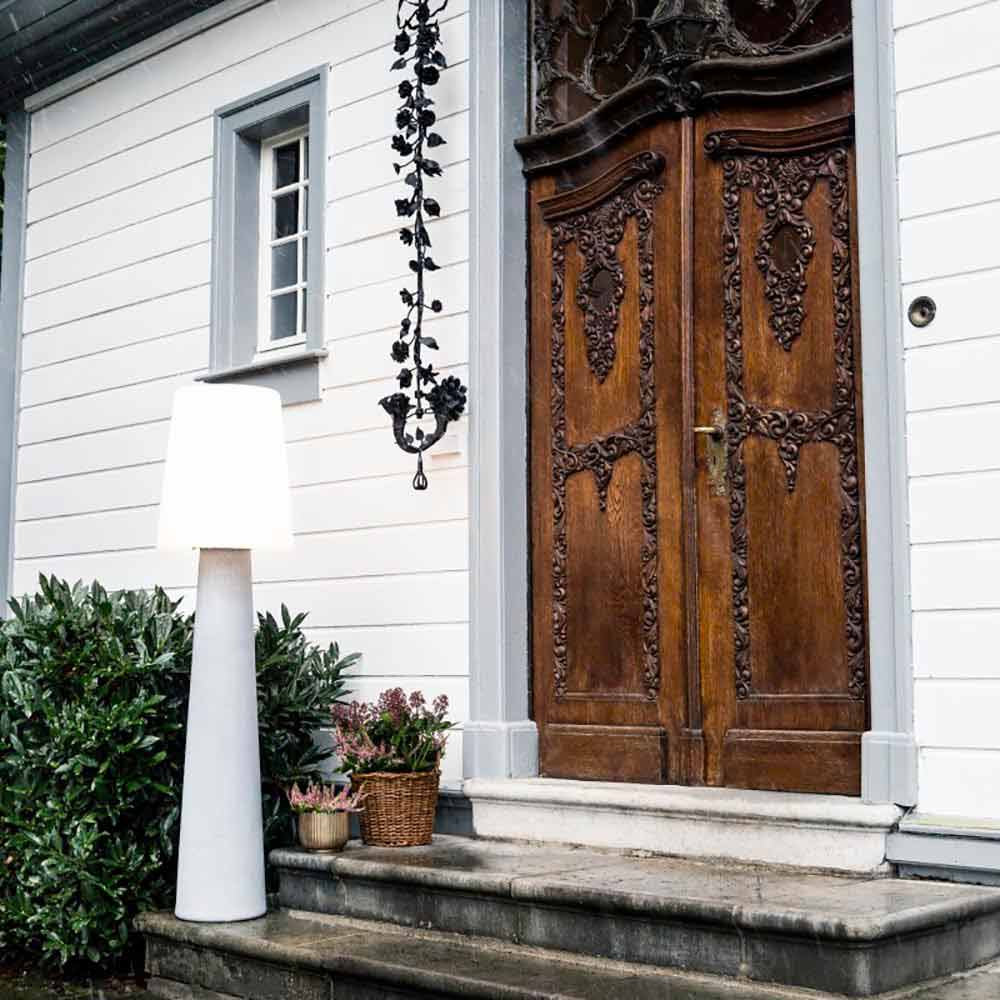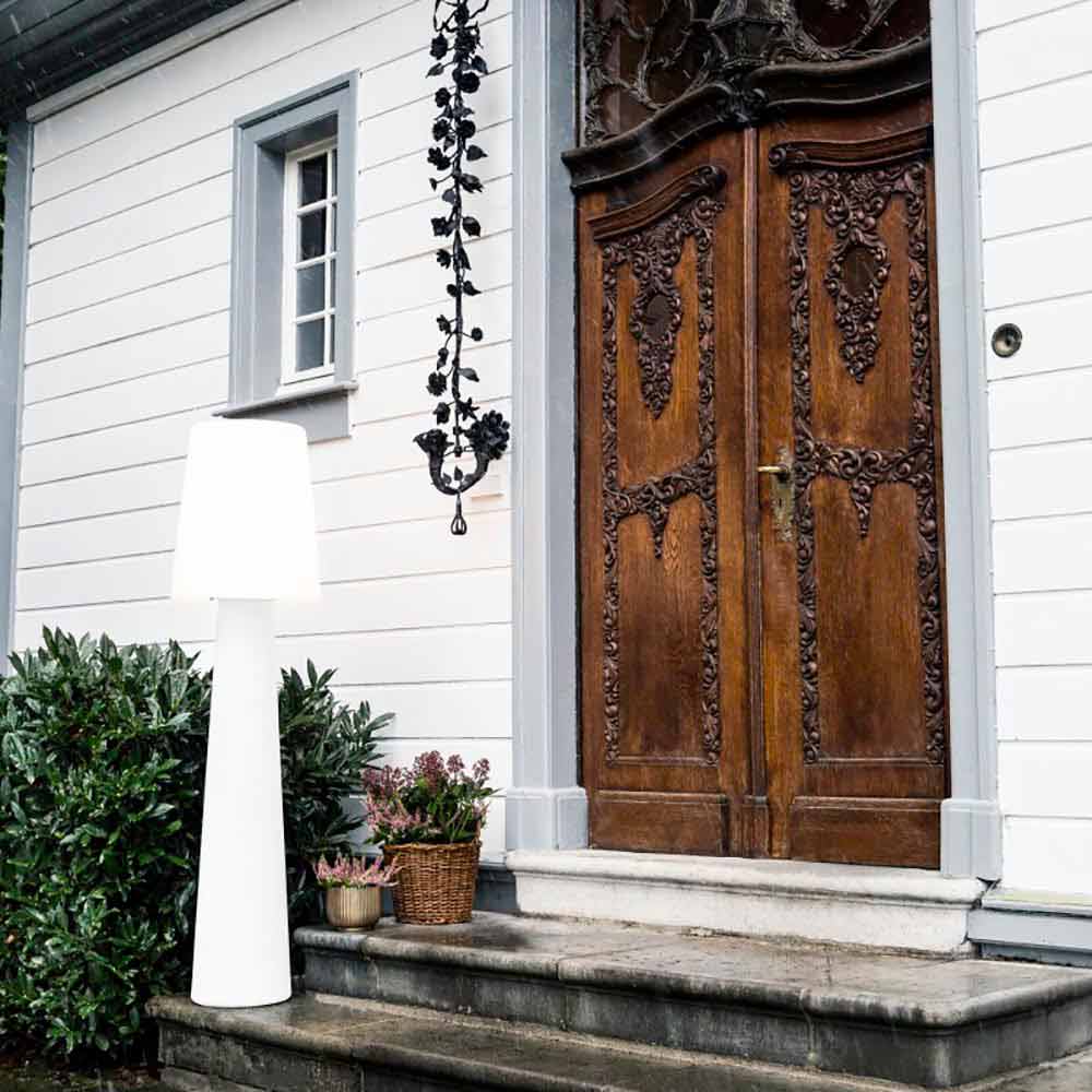 Esta lámpara de pie se caracteriza por un diseño contemporáneo y atemporal capaz de crear un ambiente perfecto y elegante tanto en espacios interiores como exteriores .