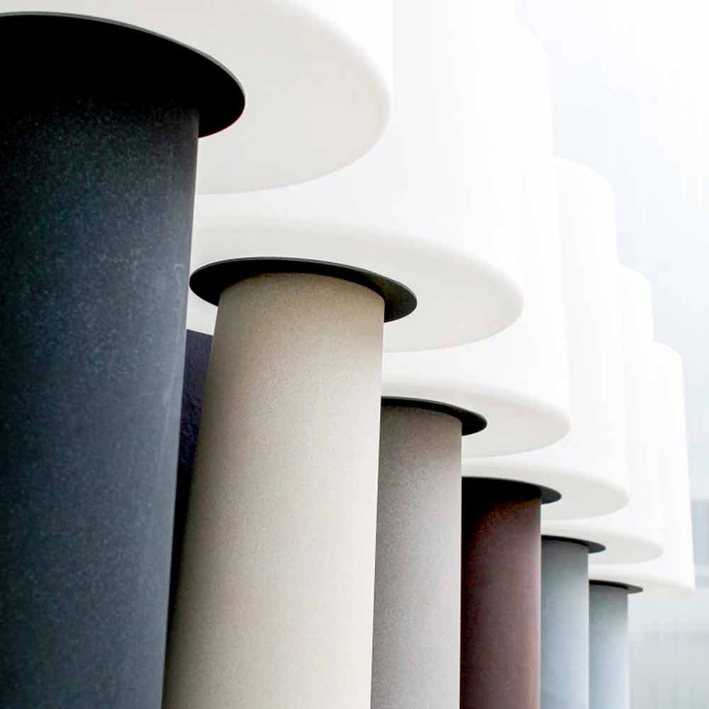 Lámpara de pie con opción de fijación disponible en diferentes colores, con un diseño moderno para interior o exterior.