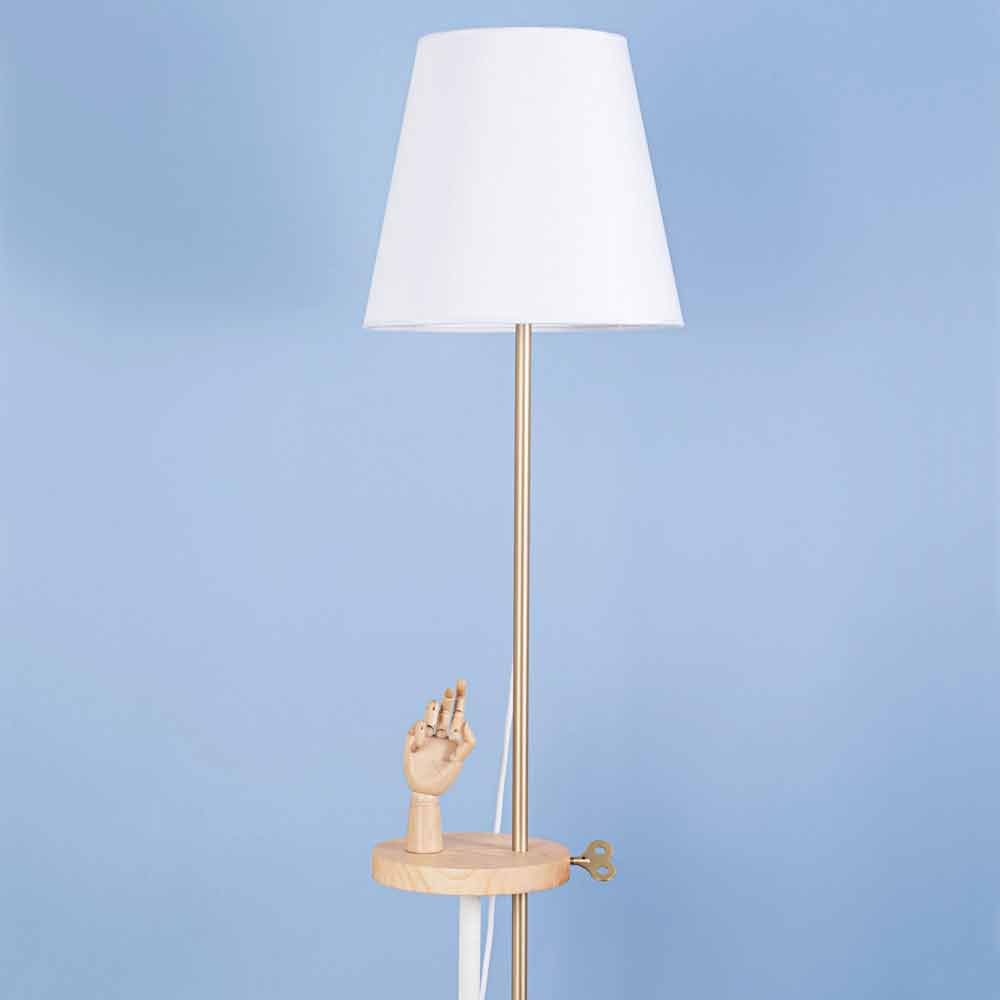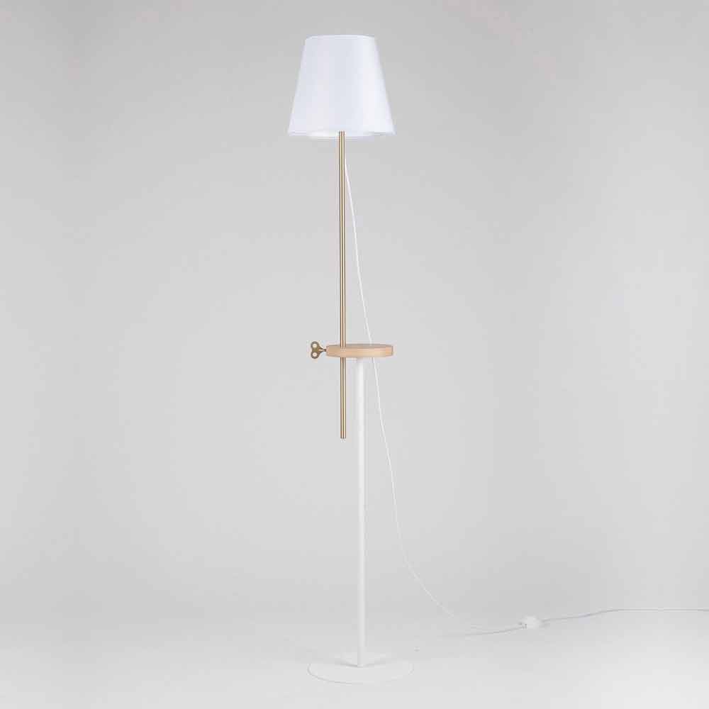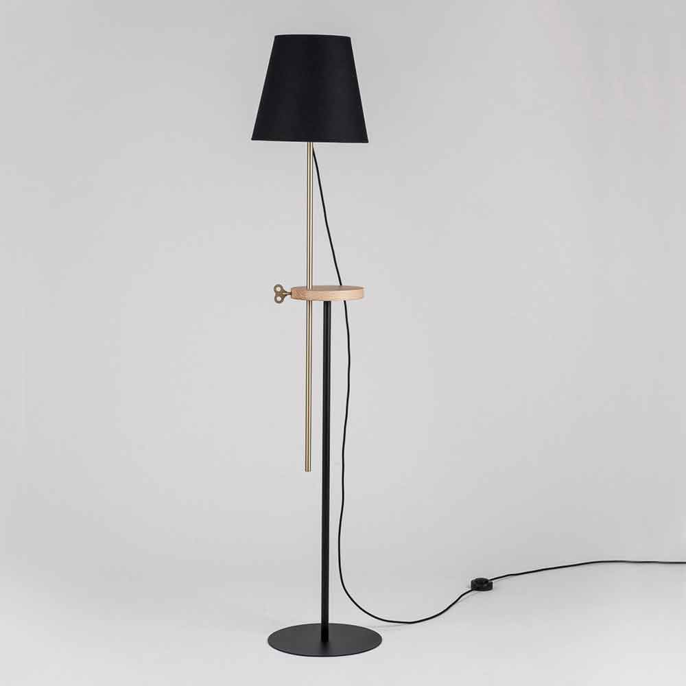 Lámpara de pie de diseño con estructura en acero y madera de fresno Made in Italy.