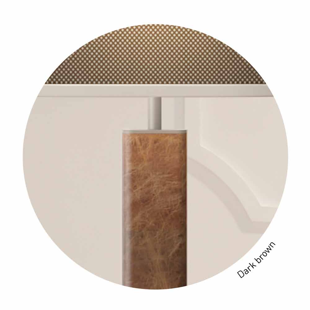 metal plateado lux, cuero marrón oscuro y malla marrón;