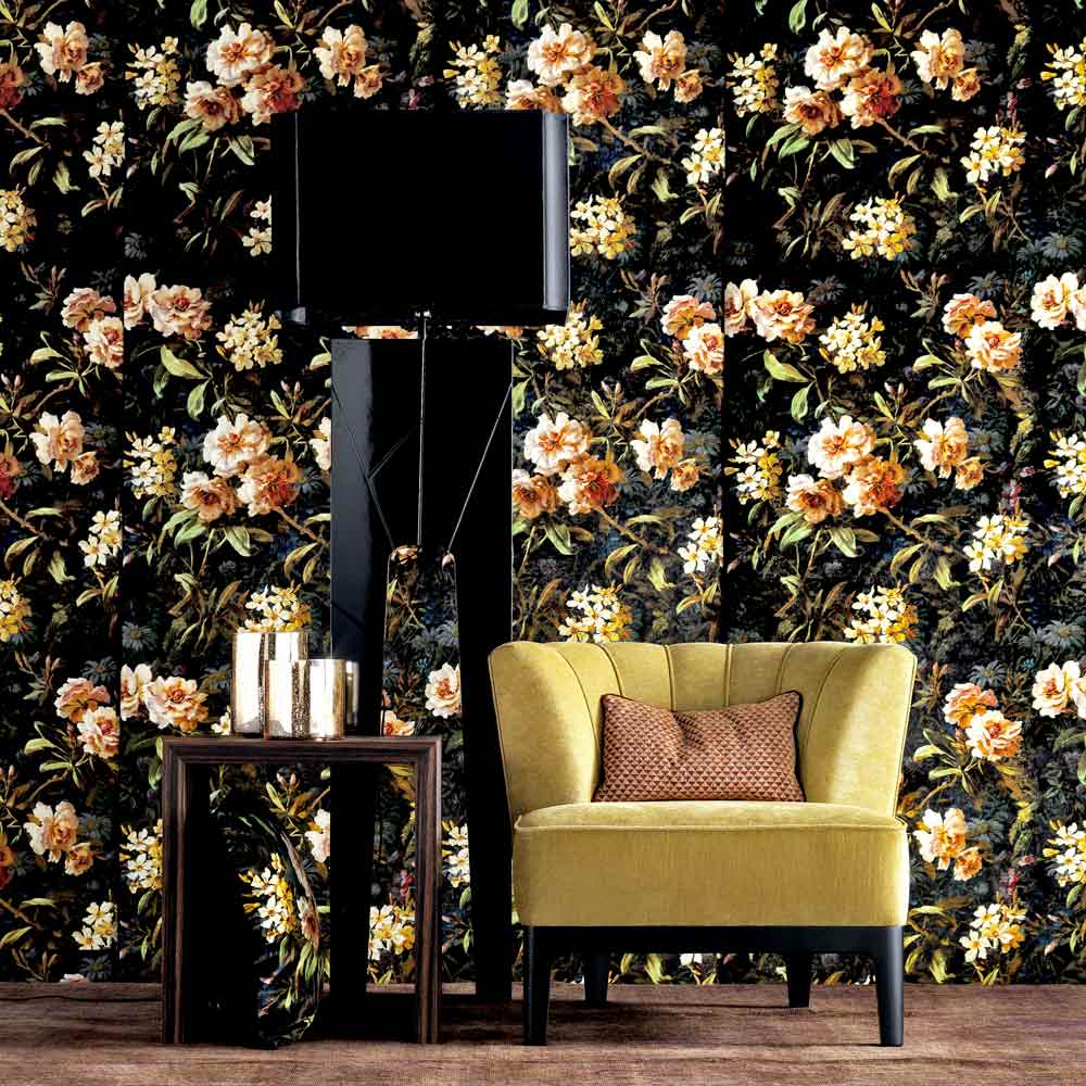 La lámpara de pie Zarafa está hecha de una sólida estructura de madera maciza lacada en negro y un sombrero de tela de satén negro.