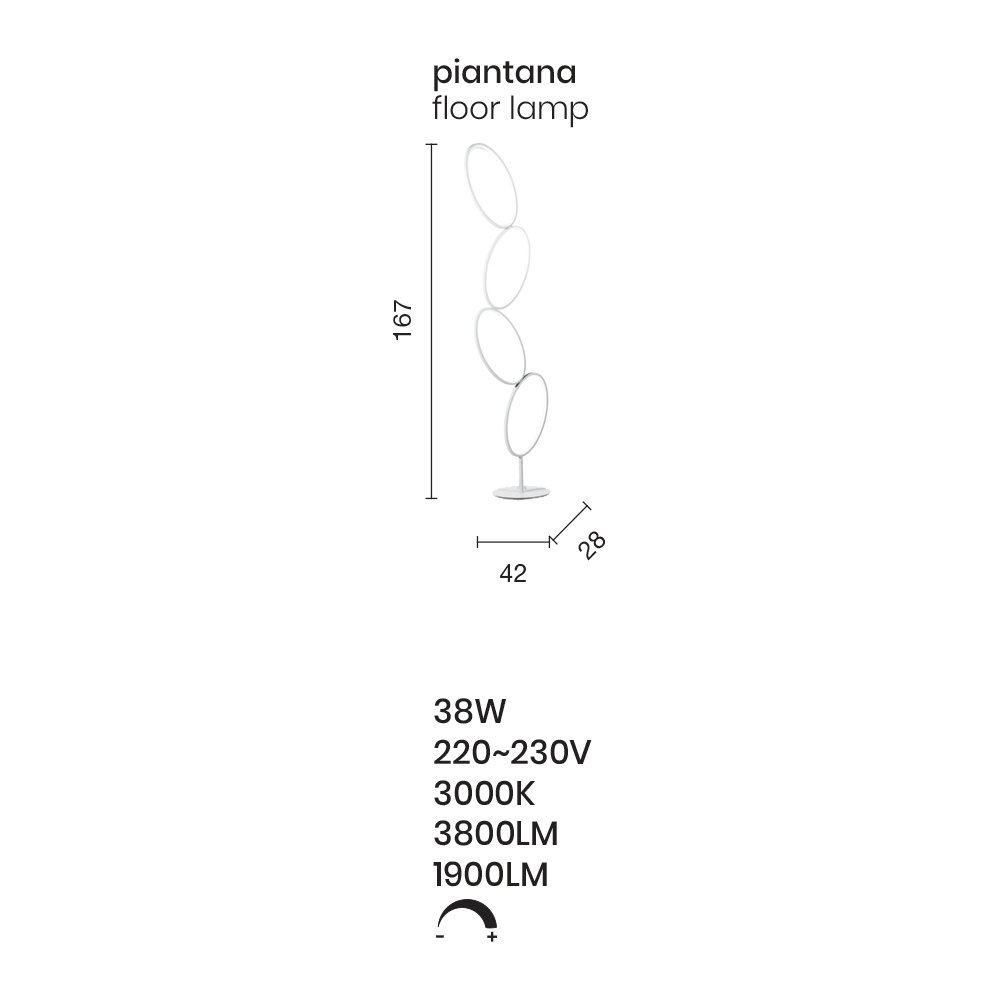 Lámpara de pie LED de metal con difusor de acrílico y silicona.