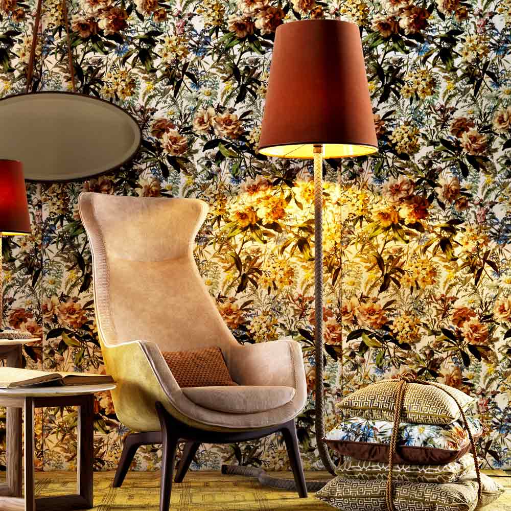 Lámpara de pie fabricada en Italia en metal y tejido Grilli Snake.