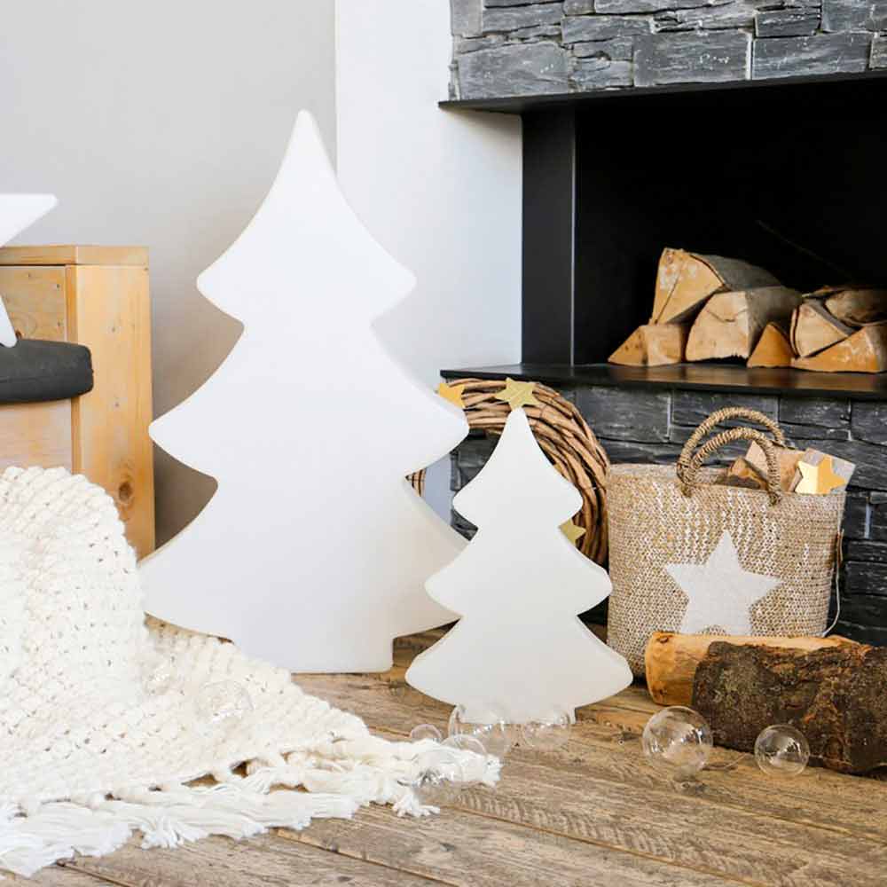 Lámpara de pie de interior o exterior con un diseño moderno en forma de árbol de Navidad en polietileno blanco disponible con 3 tipos de ataque.