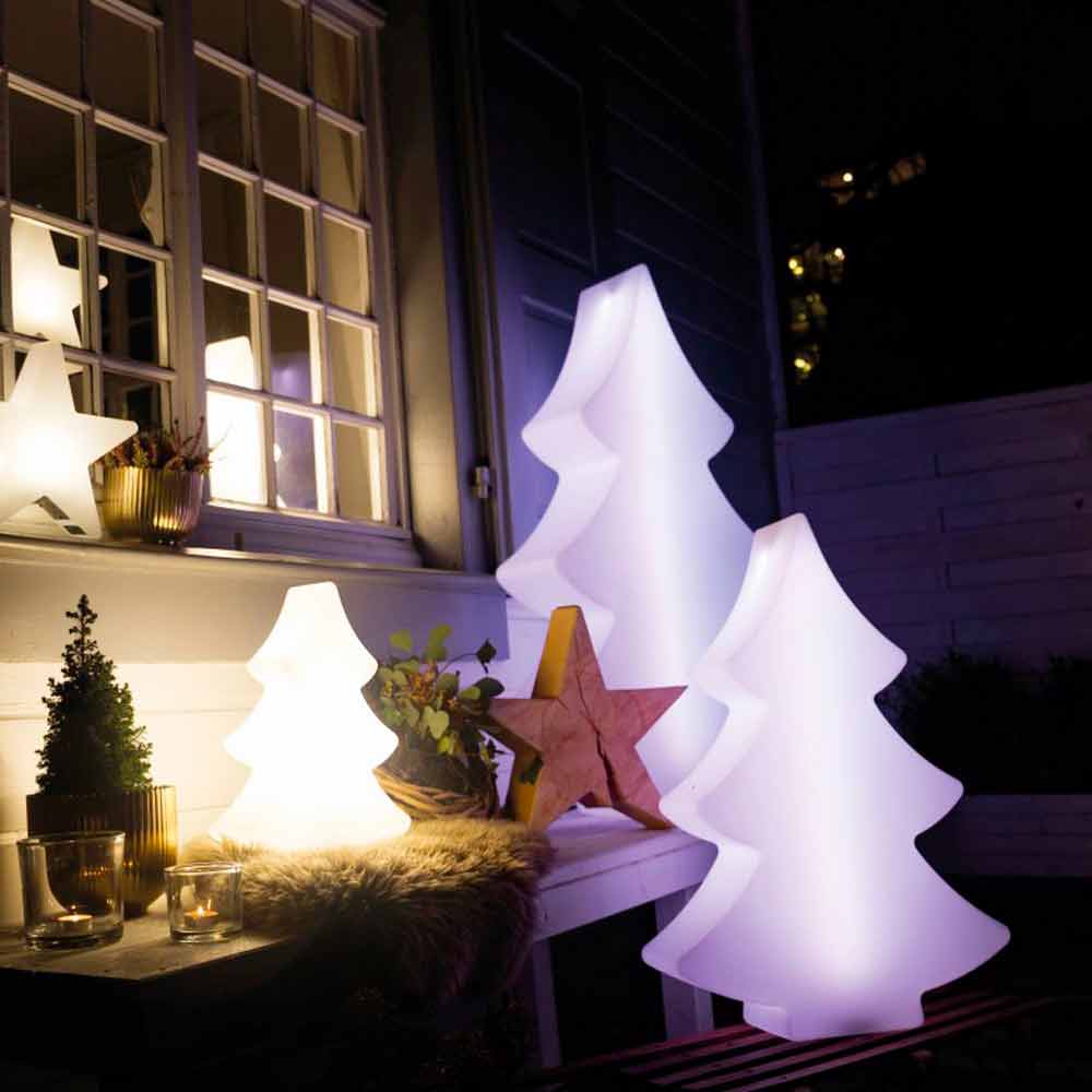 Esta lámpara de sobremesa o de pie para interior o exterior se caracteriza por su cautivador diseño en forma de abeto disponible en tres tamaños, para simbolizar la Navidad, para un ambiente acogedor y festivo.