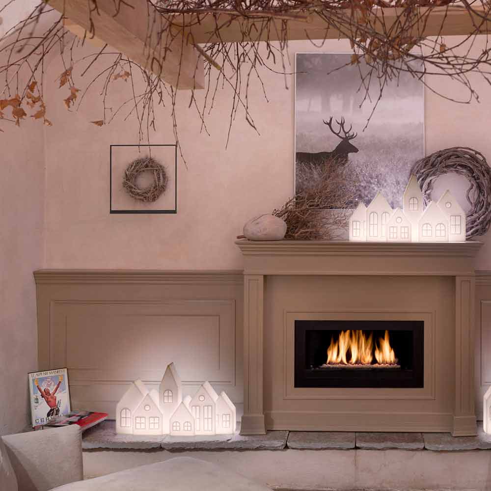 Esta lámpara de sobremesa ayuda a crear el espíritu navideño gracias a su diseño en forma de pesebre de fuerte alma contemporánea formado por seis casas, que recuerda el estilo clásico de los paisajes escandinavos tradicionales.