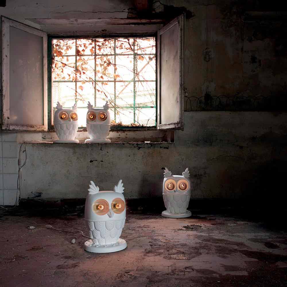 Esta original y singular lámpara de sobremesa tiene un diseño moderno y agradable en forma de búho donde los ojos que ocupan las fuentes de luz dan un espíritu ligero y sofisticado.