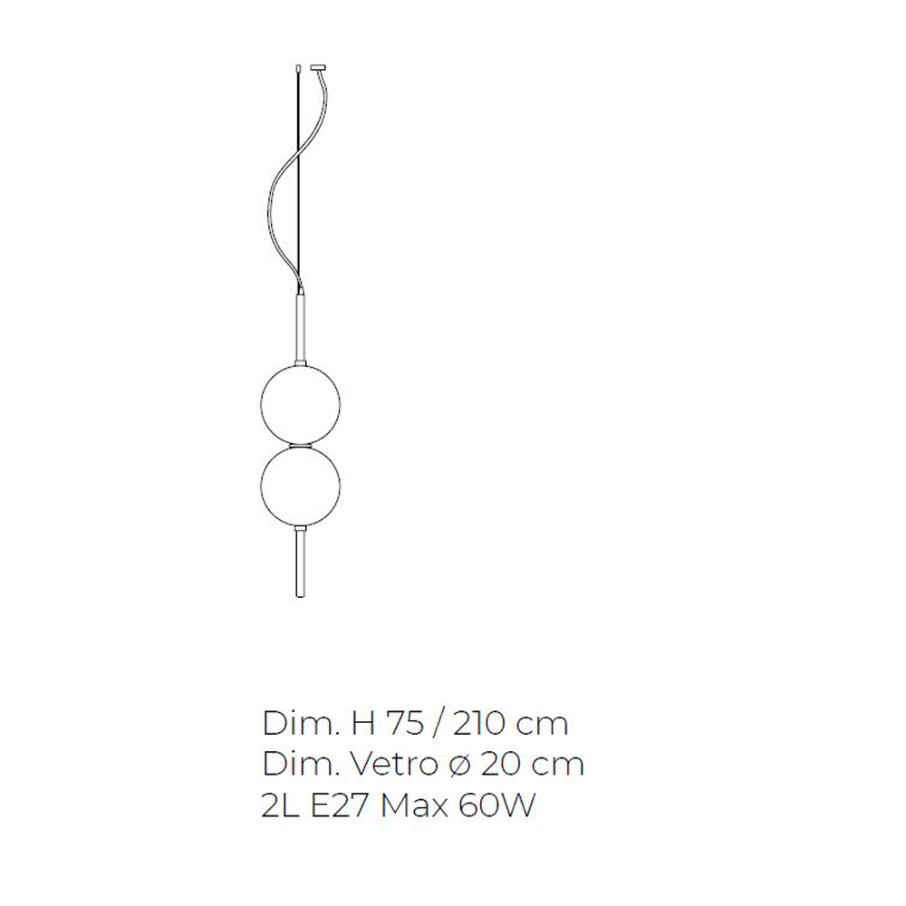 Lámpara de suspensión de 2 luces fabricada artesanalmente en vidrio soplado en los hornos de la laguna de Venecia, en Italia, gracias a las antiguas técnicas de procesamiento del vidrio de Murano transmitidas a lo largo de los años por los más expertos maestros del vidrio.