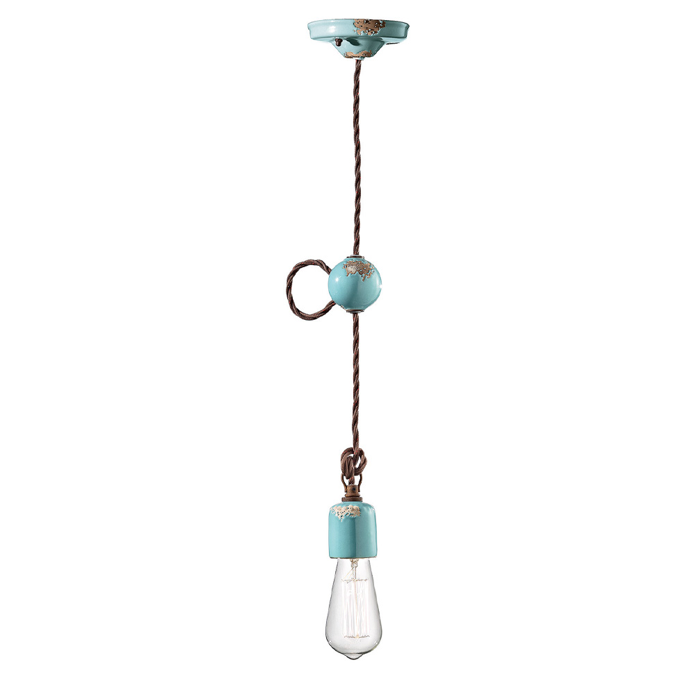 Lámpara de colgar industrial hecha a mano en cerámica y metal fabricada en Italia por Ferroluce.