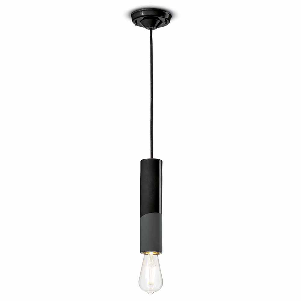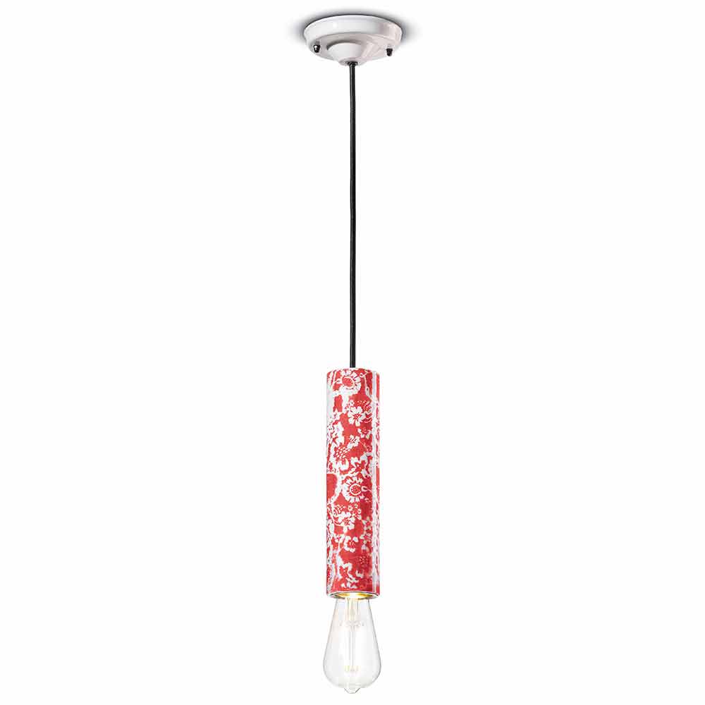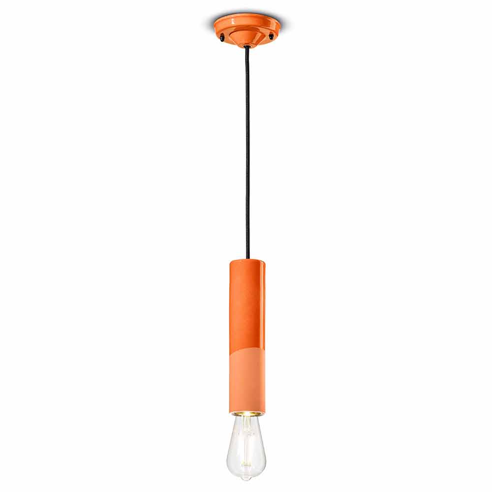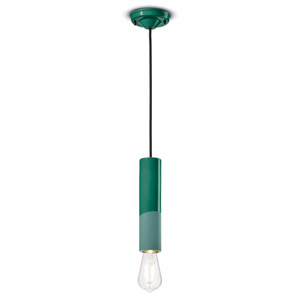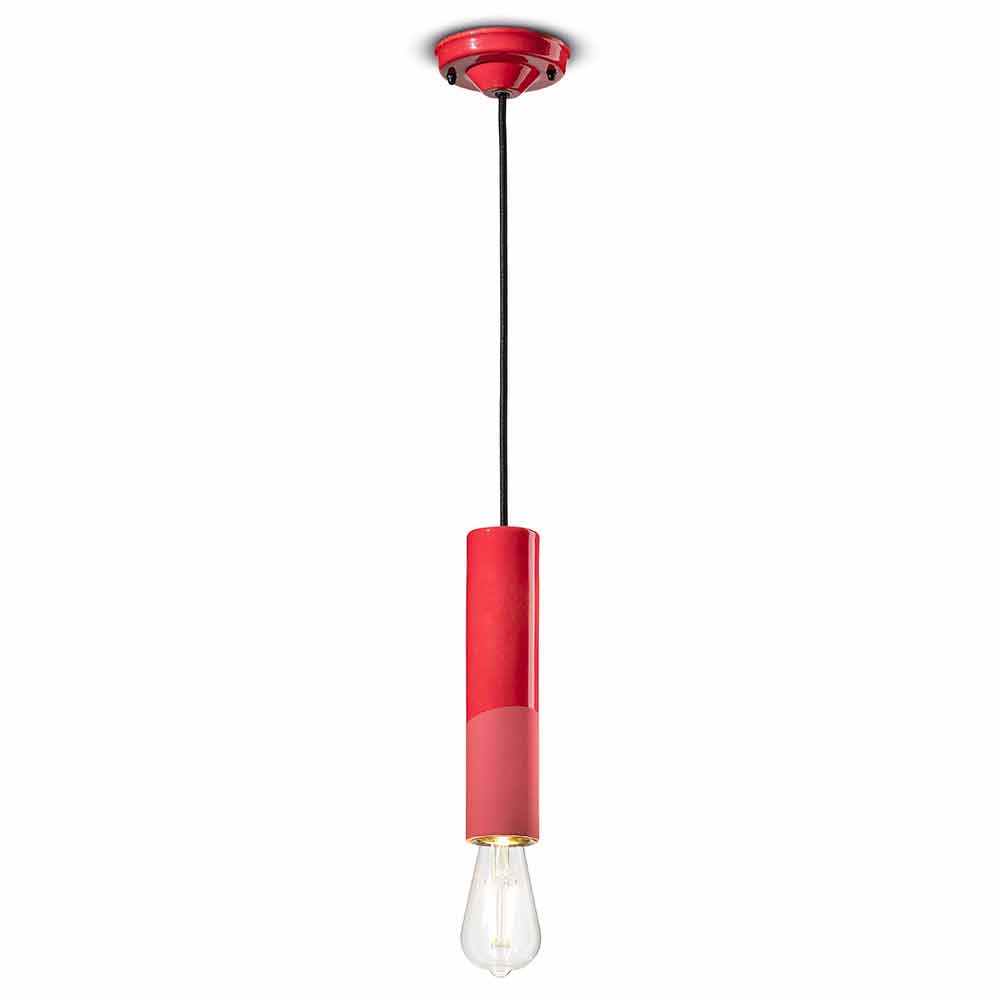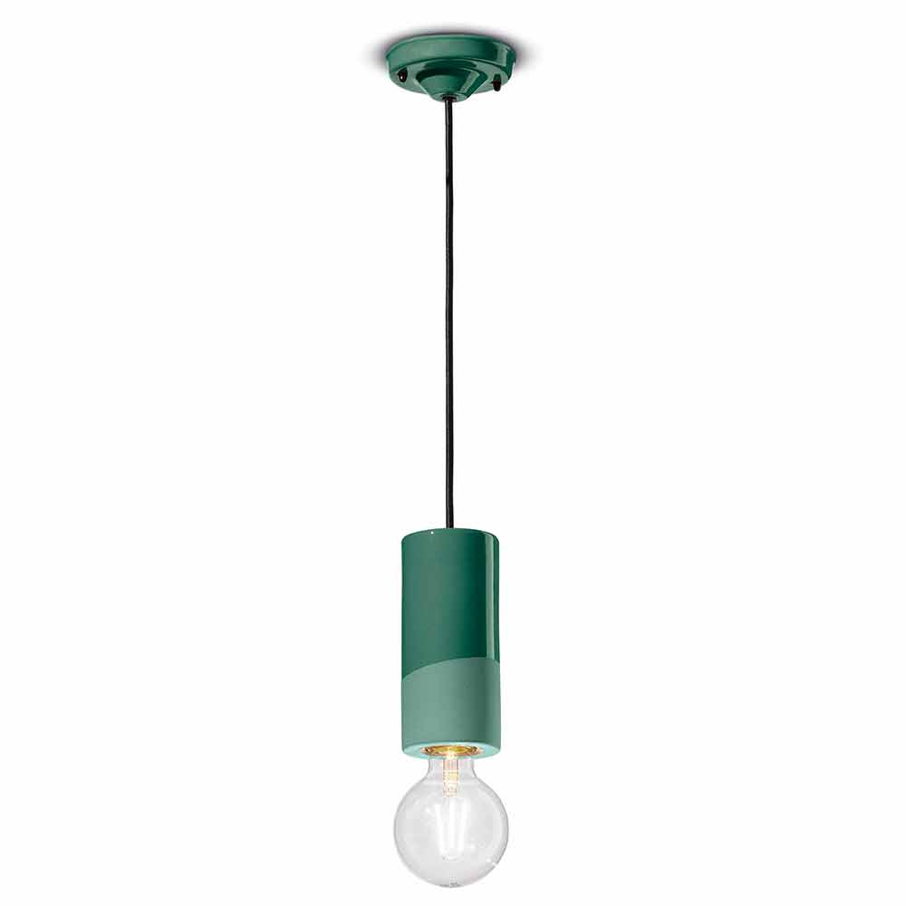 Lámpara de suspensión cilíndrica de estilo retro en cerámica de colores, fabricada artesanalmente en Italia.