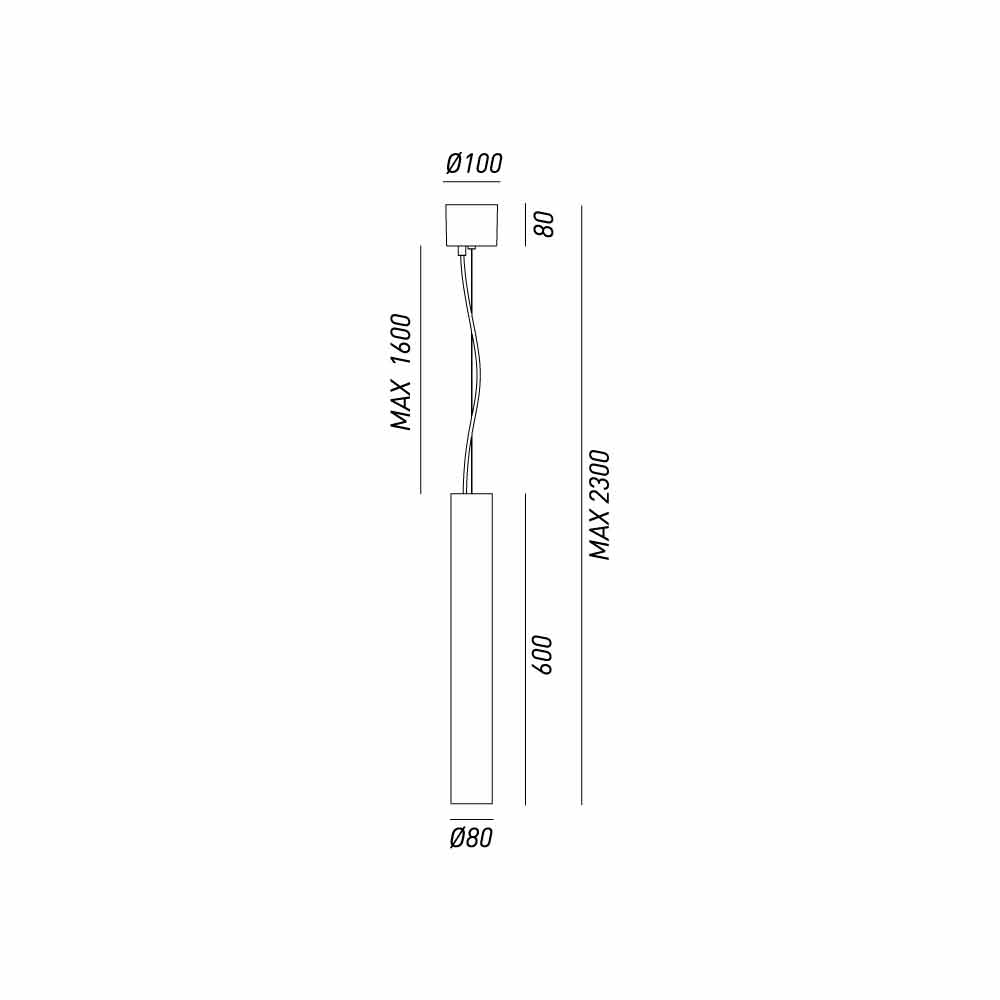 Medidas Difusor: Ø80 mm x h.600 mm; suspensión máxima h. 2300 milímetros; Roseta Ø100 mm
