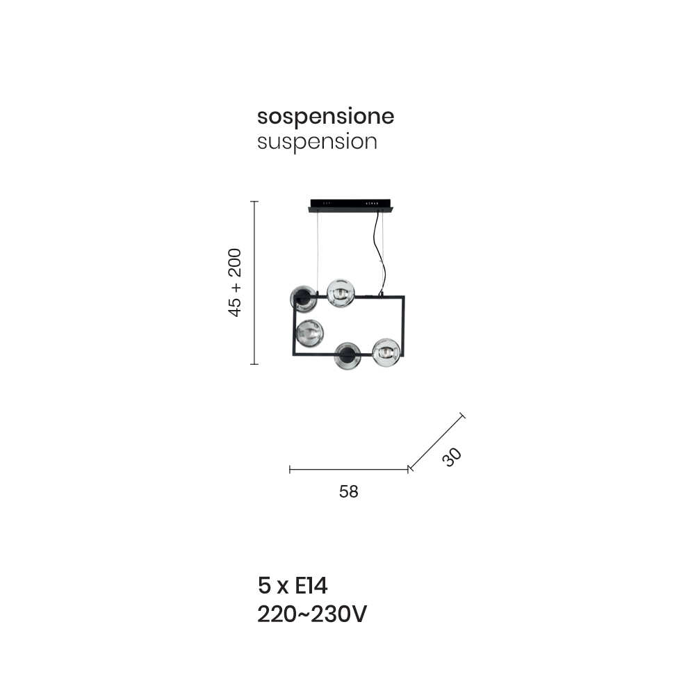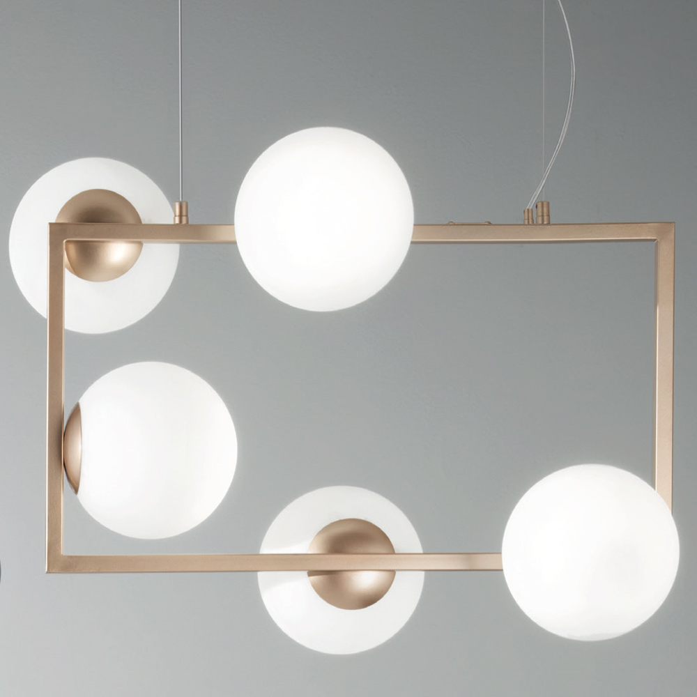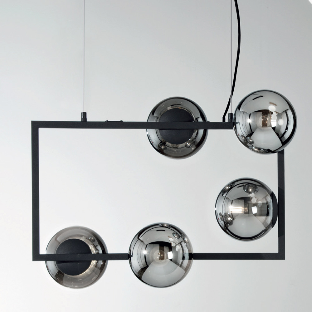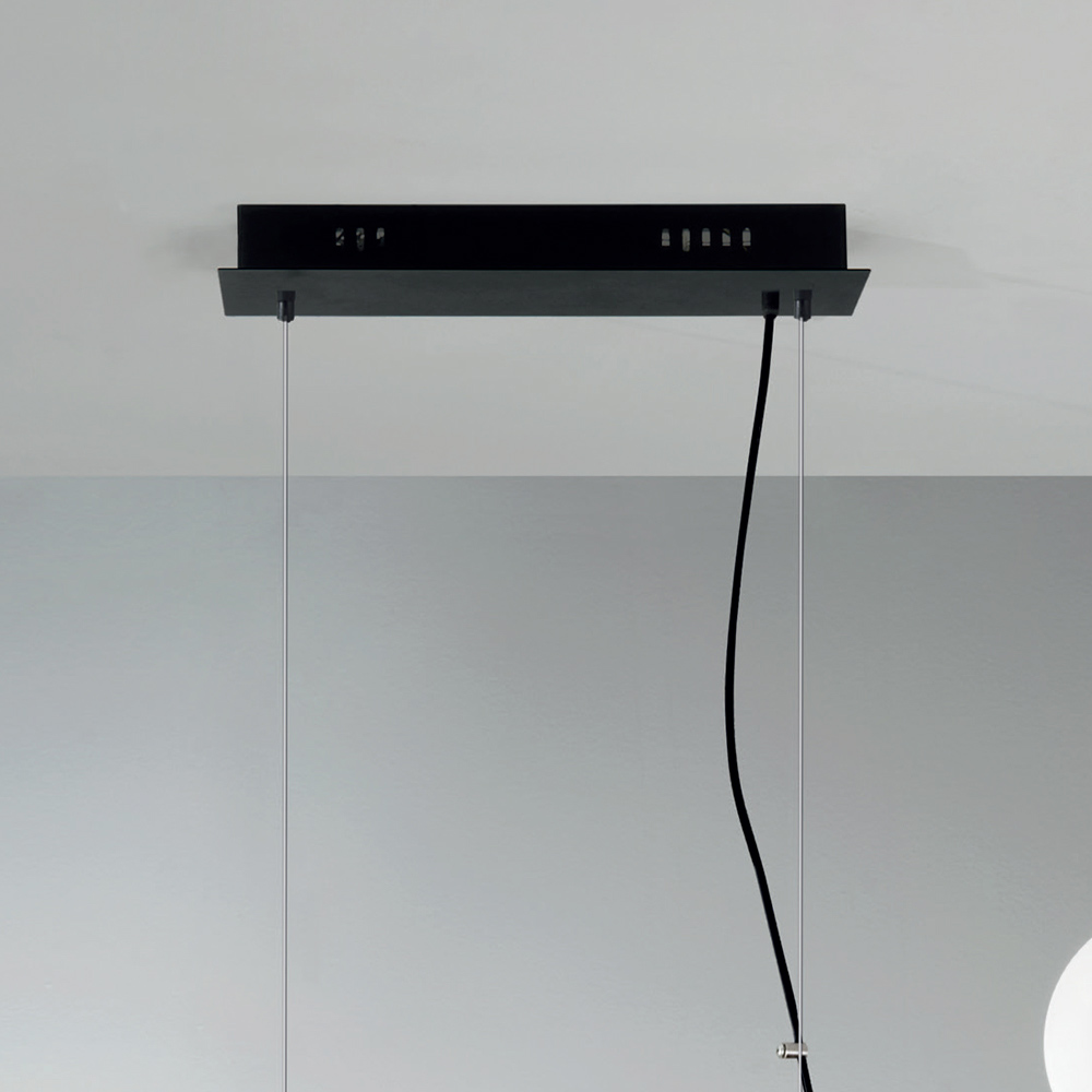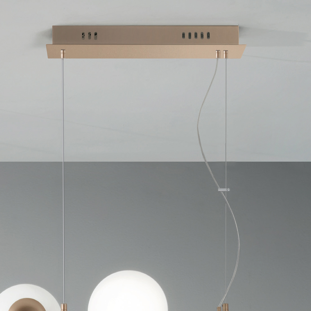 difusores esféricos de vidrio soplado con cables regulables en altura. De la combinación perfecta del toque moderno del metal y la elegancia atemporal del vidrio soplado,