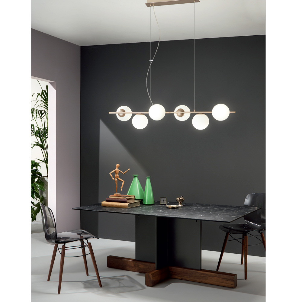 nace una solución de decoración original y refinada , capaz de conquistar el centro de atención en los ambientes hogareños contemporáneos. Su estructura se desarrolla en una sola línea que la convierte en una solución especialmente adecuada para iluminar tu mesa en el interior del comedor o la cocina.