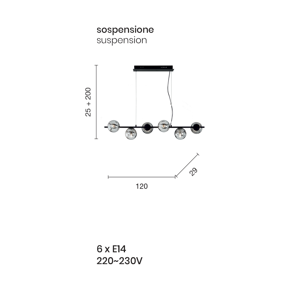Característica de la bombilla : 6x E14 220-230V