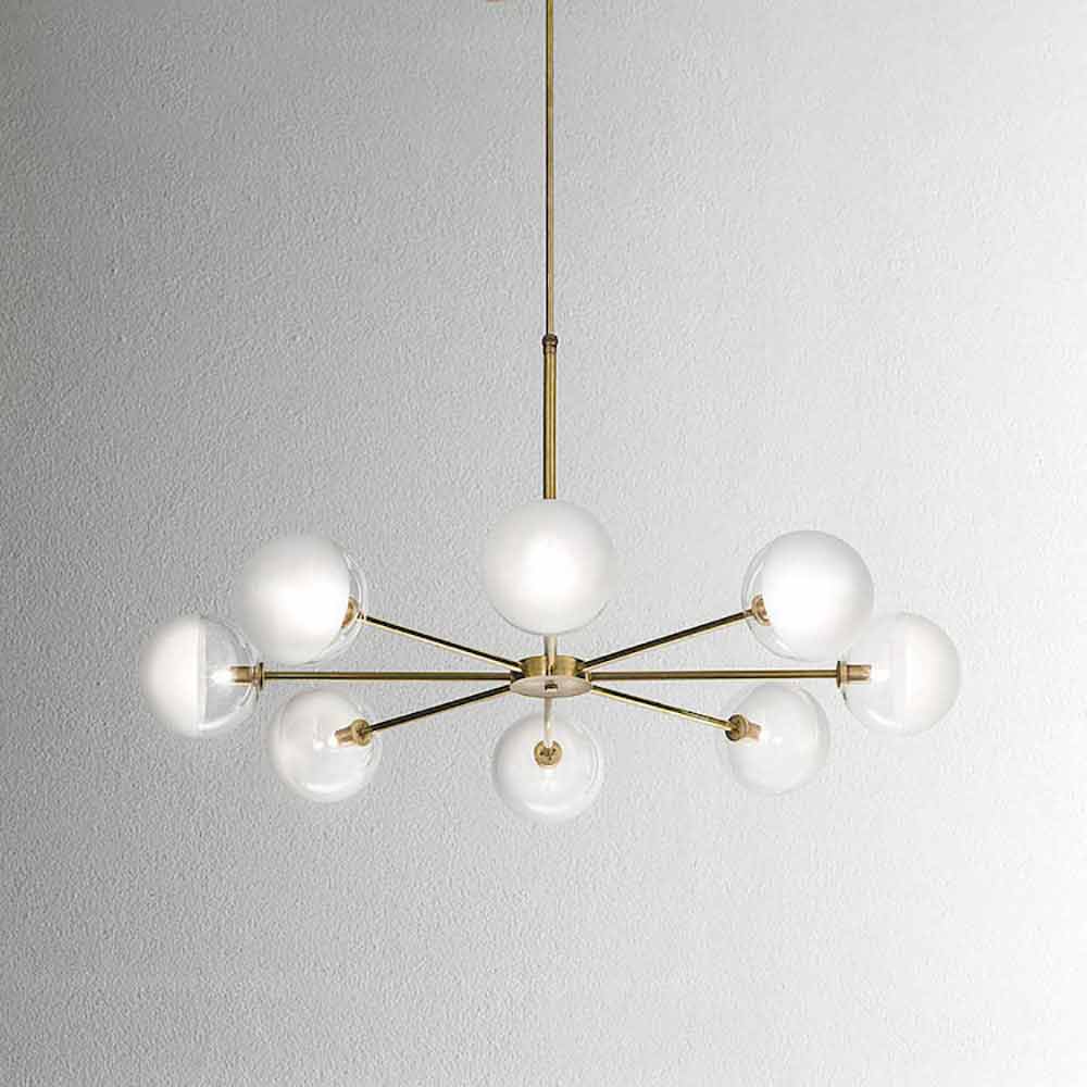 Bajo pedido también disponible en la versión en latón antiguo o esferas de vidrio pintadas de negro y cobreadas.