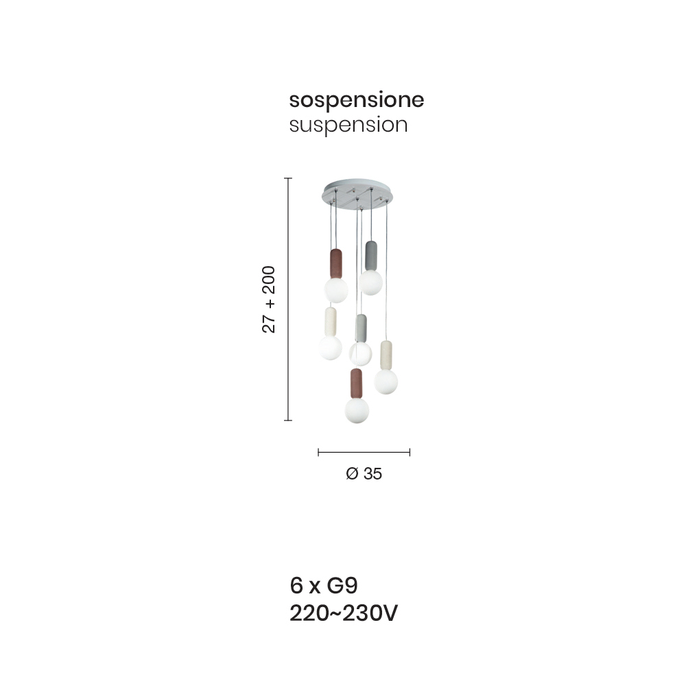 - 6 luces - diámetro 35 x H 227 cm (6x G9 220-230V);