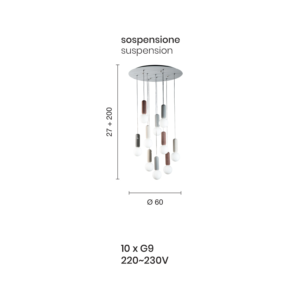 - 10 luces - diámetro 60 x H 27 cm (10x G9 220-230V).