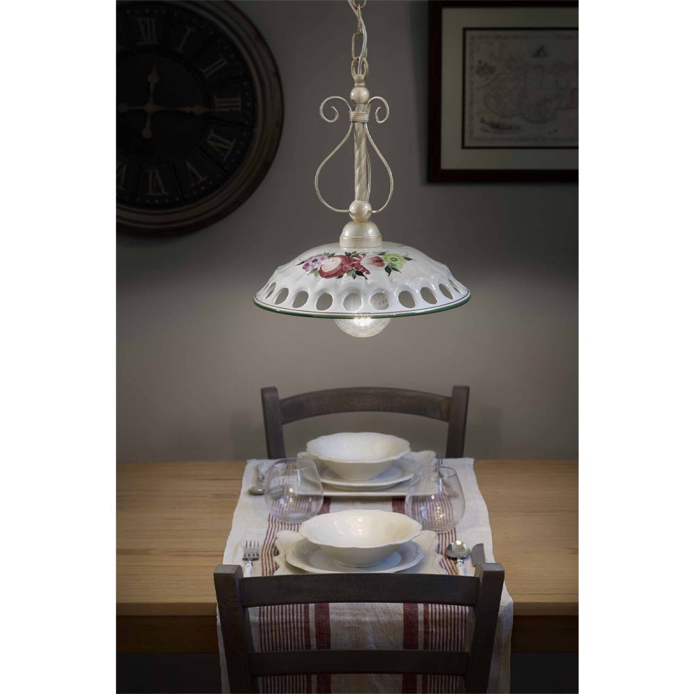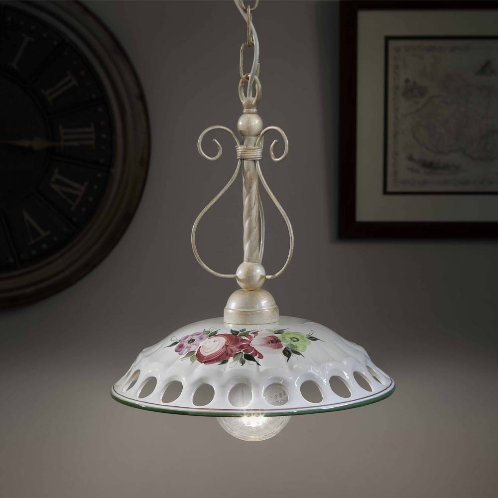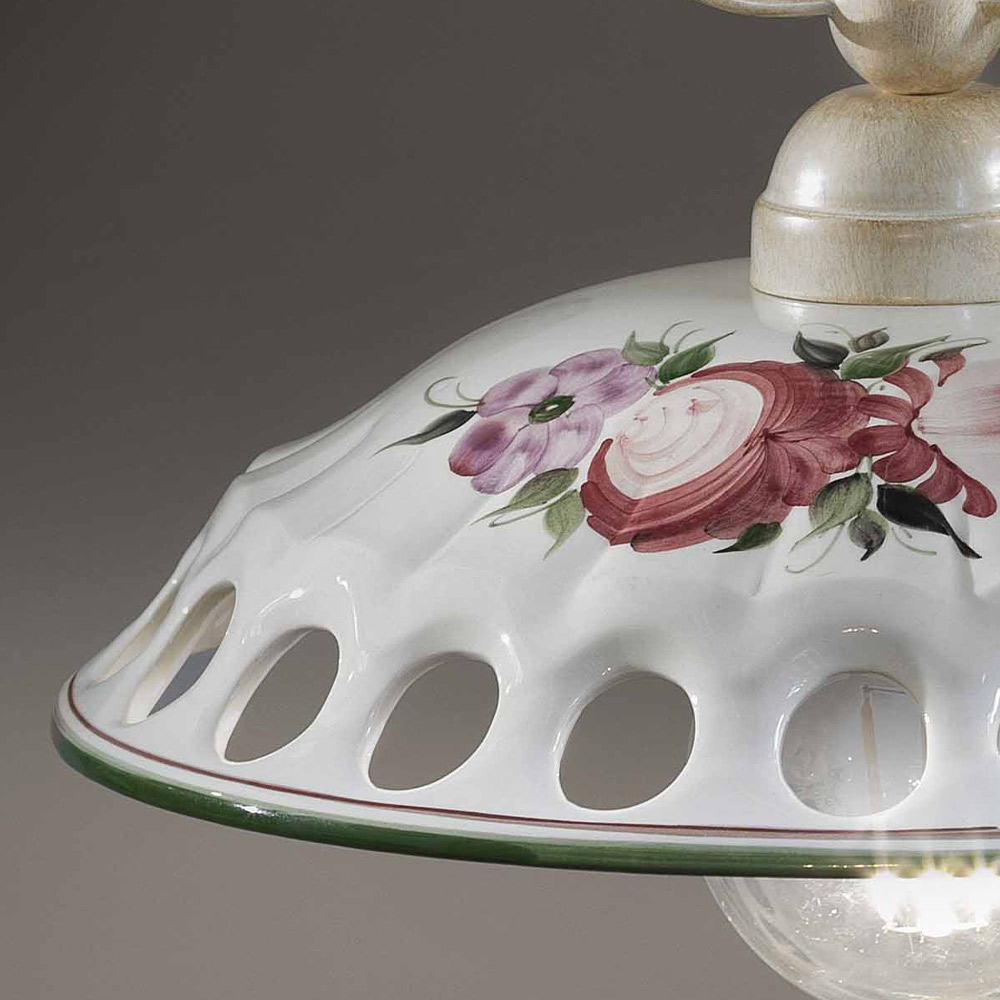 Lámpara de techo en metal y cerámica artesanal con cintas, fabricada en Italia por Ferroluce.